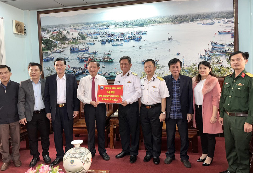 Lãnh đạo Thị ủy Hoài Nhơn tặng biểu trưng 3 nghìn cây dừa giống tới quân dân huyện đảo Trường Sa
