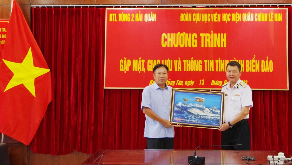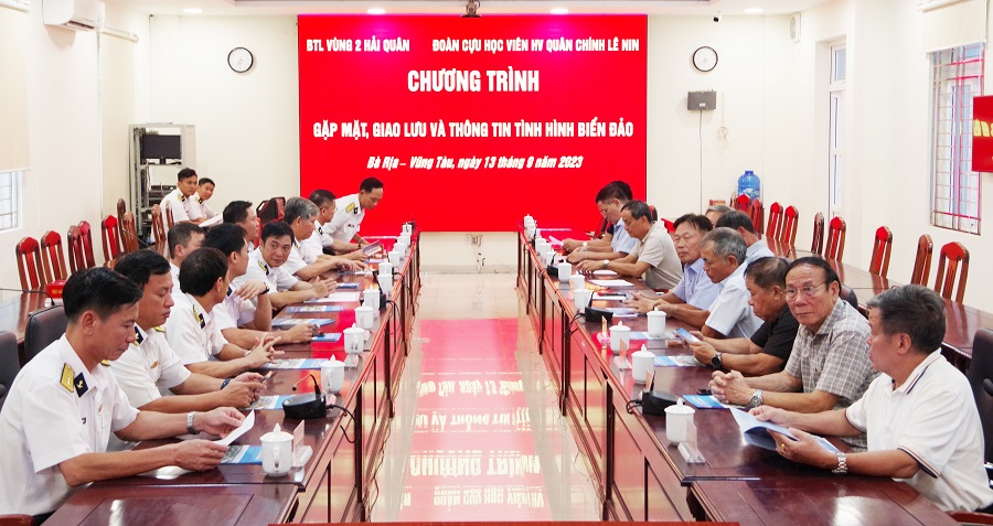 Chiều 13/9, tại TP. Vũng Tàu, tỉnh Bà Rịa-Vũng Tàu, đoàn cựu học viên Học viện Quân chính Lê nin do đồng chí Lê Tự Minh, Chủ tịch Hội đồng quản trị Công ty Cổ phần đầu tư IMG làm trưởng đoàn đã đến thăm, giao lưu với cán bộ, chiến sĩ Vùng 2 Hải quân.