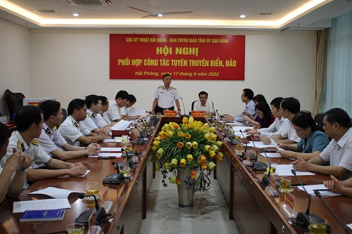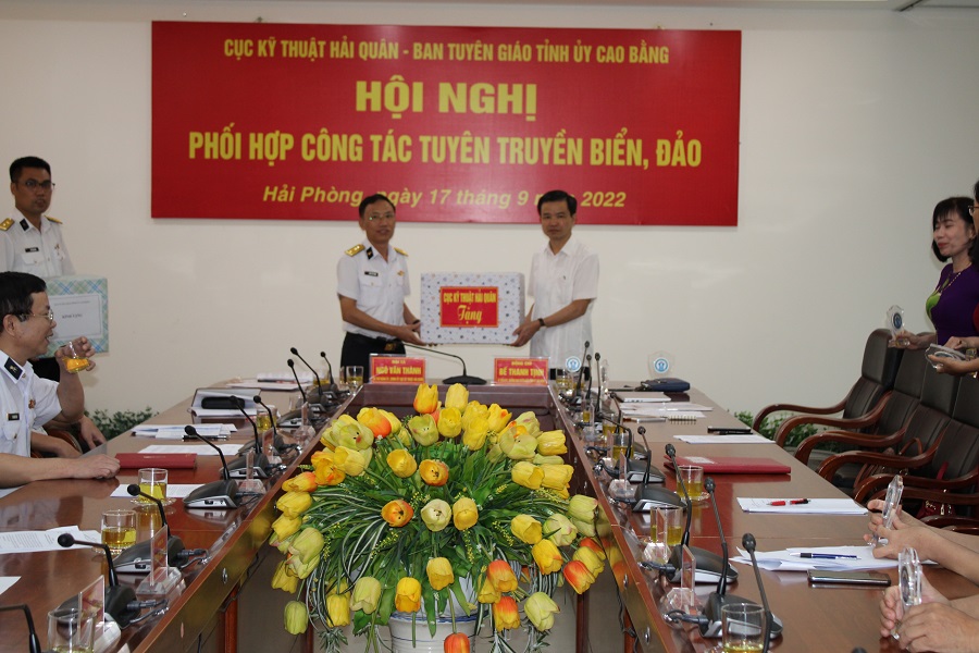 Ngày 17/9, tại Hải Phòng, đoàn công tác của Ban Tuyên giáo Tỉnh ủy Cao Bằng đã làm việc với Cục Kỹ thuật Hải quân về công tác phối hợp tuyên truyền biển, đảo. Đồng chí Bế Thanh Tịnh, Ủy viên Thường vụ, Trưởng ban Tuyên giáo Tỉnh ủy Cao Bằng và Đại tá Ngô Văn Thành Bí thư Đảng ủy, Chính ủy Cục Kỹ thuật đồng chủ trì.