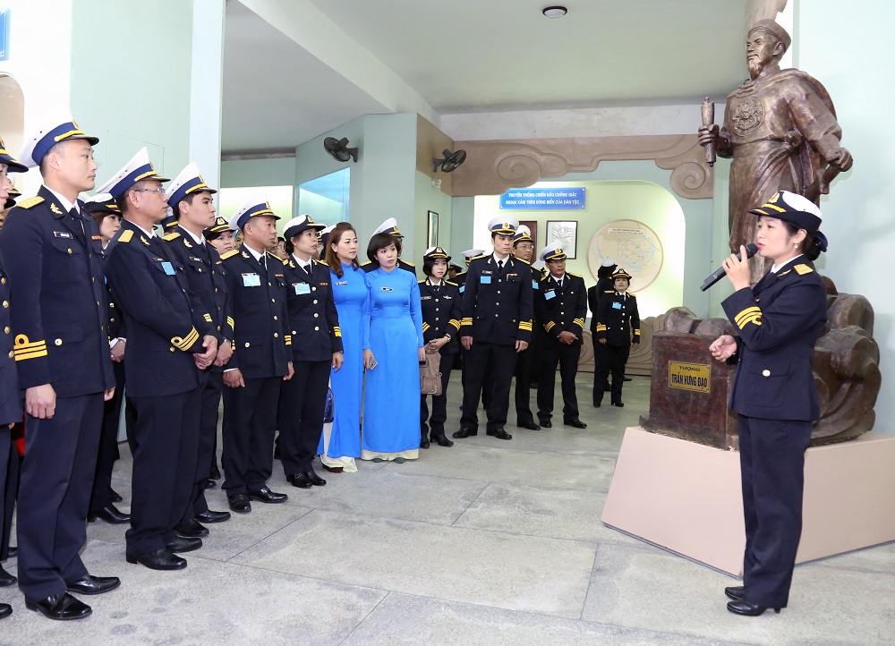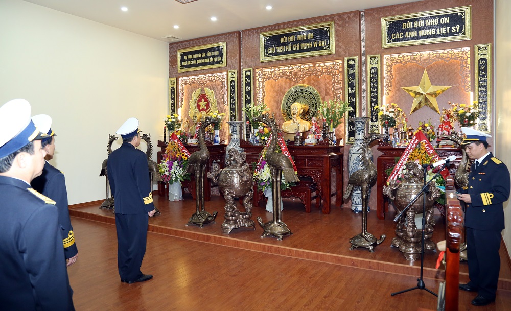 Các đại biểu dâng hương trước bàn thờ Chủ tịch Hồ Chí Minh, Đại tướng Võ Nguyên Giáp và các anh hùng, liệt sĩ tại Bảo tàng Hải quân
