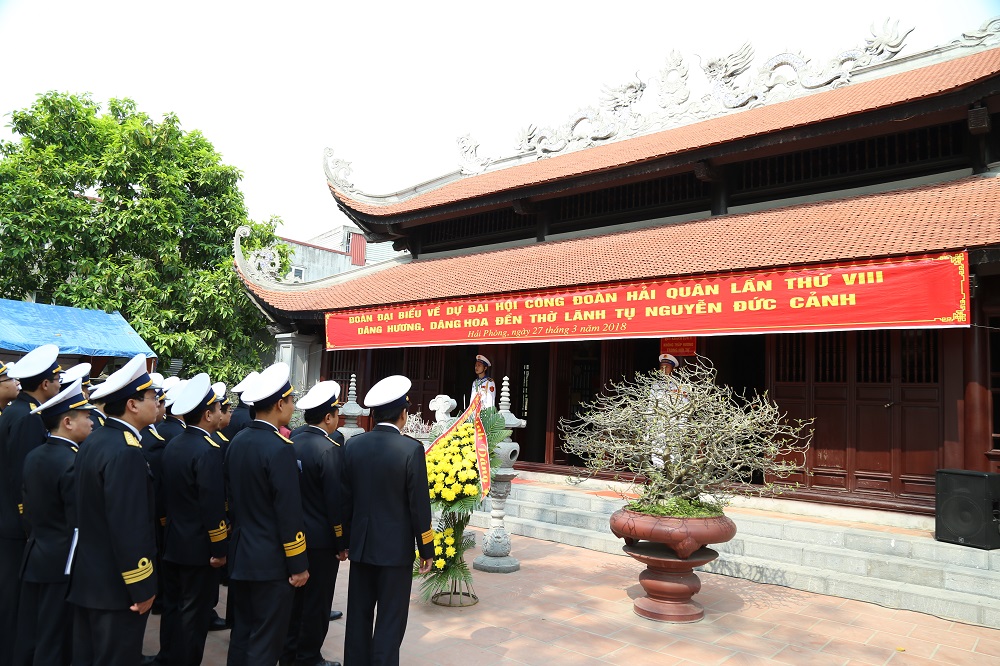 Sáng 27-3, Đoàn đại biểu dự Đại hội Công đoàn Hải quân lần thứ VIII đã tổ chức dâng hương tưởng niệm các anh hùng, liệt sĩ tại Khu di tích Bến K15 Đồ Sơn, Hải Phòng và Đền thờ lãnh tụ Nguyễn Đức Cảnh. Chuẩn Đô đốc Đặng Minh Hải, Ủy viên Thường vụ Đảng ủy Quân chủng, Phó Chính ủy Hải quân dự và chủ trì lễ dâng hương.
