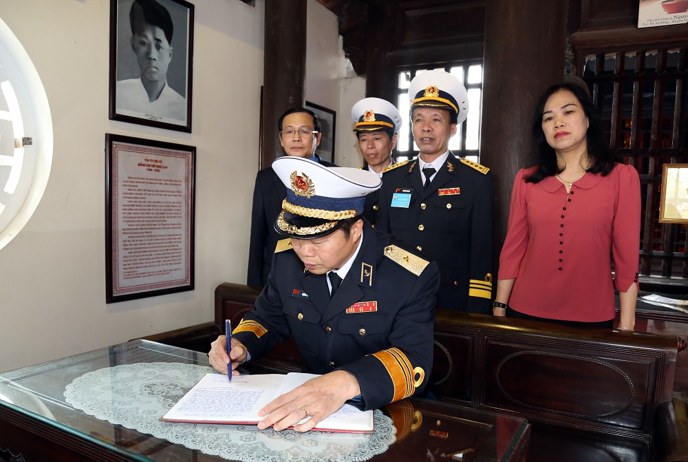 Chuẩn Đô đốc Đặng Minh Hải ghi sổ lưu niệm tại khu lưu niệm lãnh tụ Nguyễn Đức Cảnh