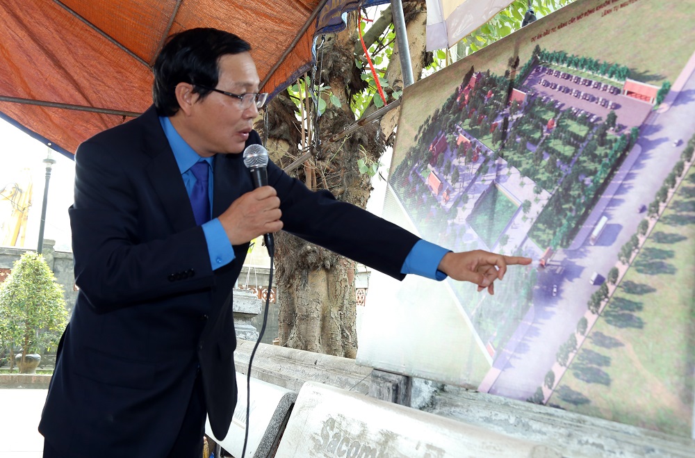 Đồng chí Phạm Hữu Thư, Chủ tịch Tổng LĐLĐ thành phố Hải Phòng giới thiệu về khu tưởng niệm được xây dựng mới