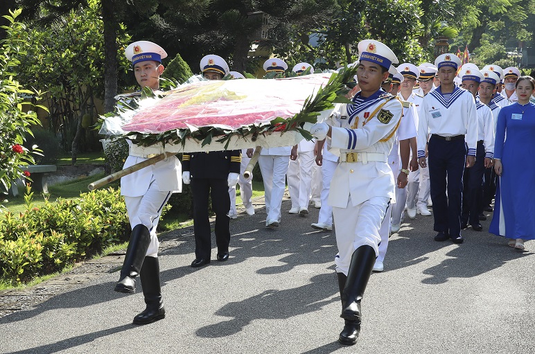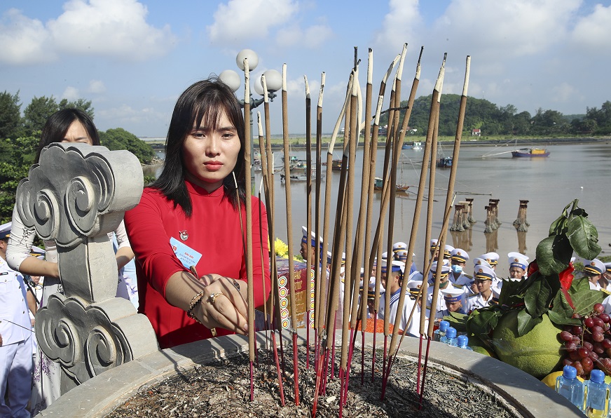 Sáng 24/8, tại Bia di tích Đường Hồ Chí Minh trên biển (Bến K15, quận Đồ Sơn, TP. Hải Phòng), đoàn đại biểu dự Đại hội đại biểu Đoàn TNCS Hồ Chí Minh Quân chủng Hải quân lần thứ IX do Chuẩn Đô đốc Phạm Văn Quang, Phó Chủ nhiệm Chính trị Hải quân làm trưởng đoàn cùng gần 230 đại biểu tổ chức Lễ dâng hương tưởng niệm các anh hùng, liệt sĩ Đoàn tàu Không số.