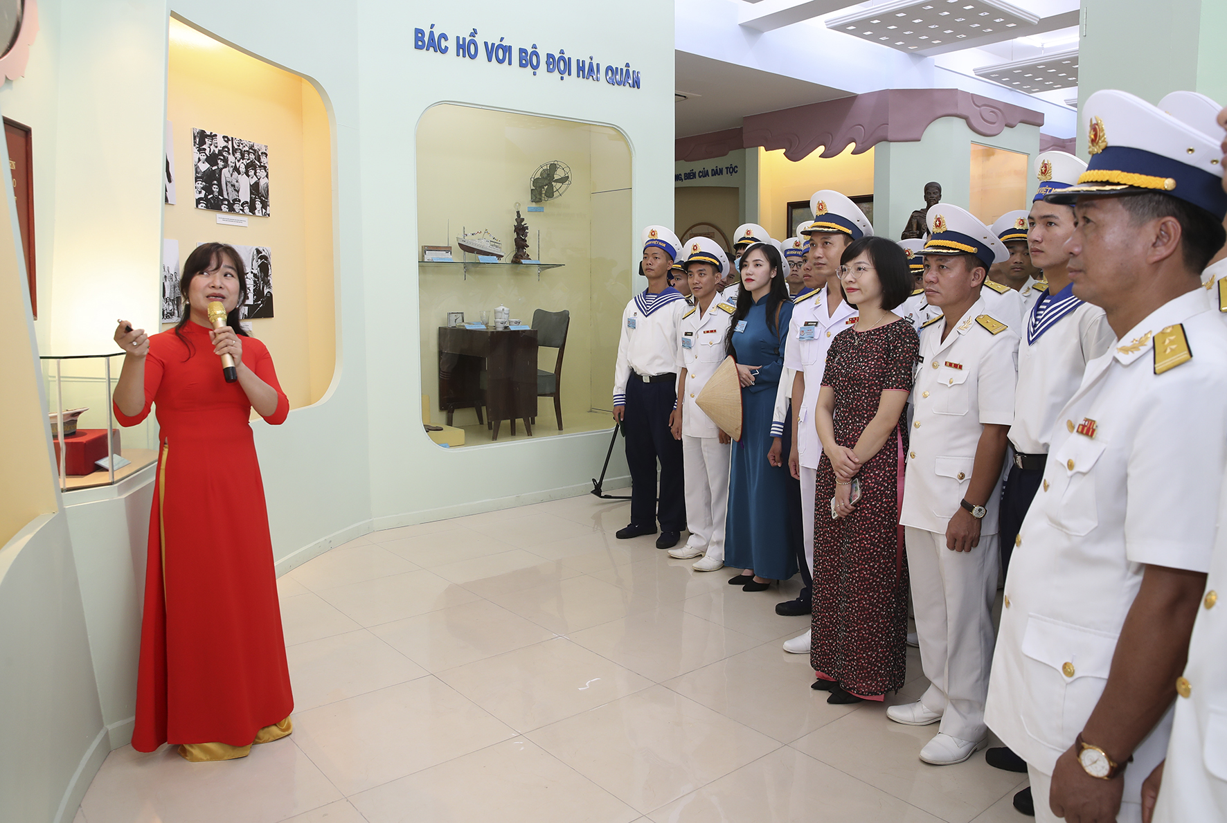 Buổi sáng cùng ngày, đoàn đã đến tham quan, nghe giới thiệu về truyền thống của Hải quân Nhân dân Việt Nam anh hùng tại Bảo tàng Hải quân.