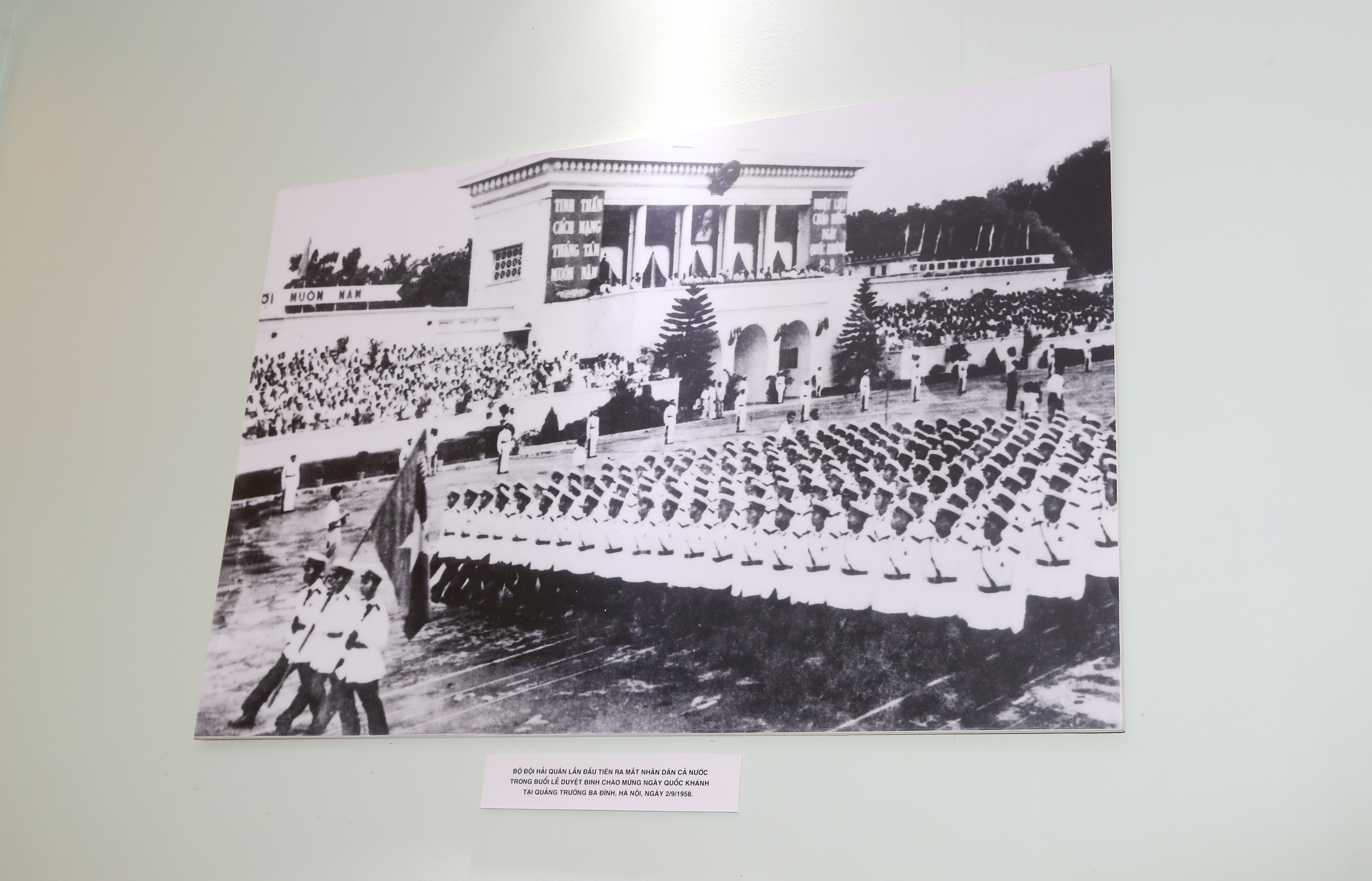 Bức ảnh Bộ đội Hải quân lần đầu tiên ra mắt cả nước trong Lễ duyệt binh chào mừng Quốc khánh tại Quảng trường Ba Đình, Hà Nội, ngày 2/9/1958 trưng bày tại Bảo tàng Hải quân