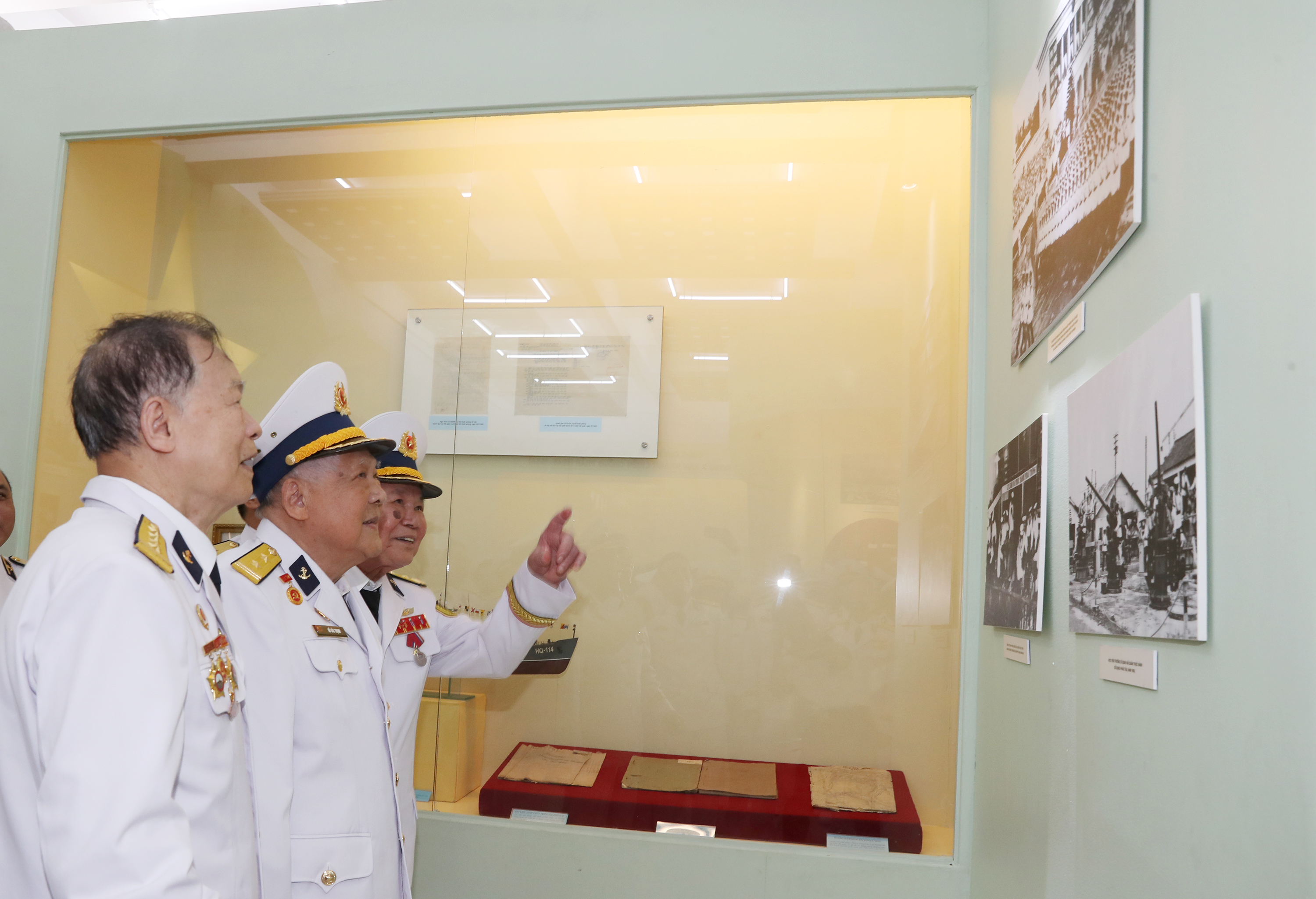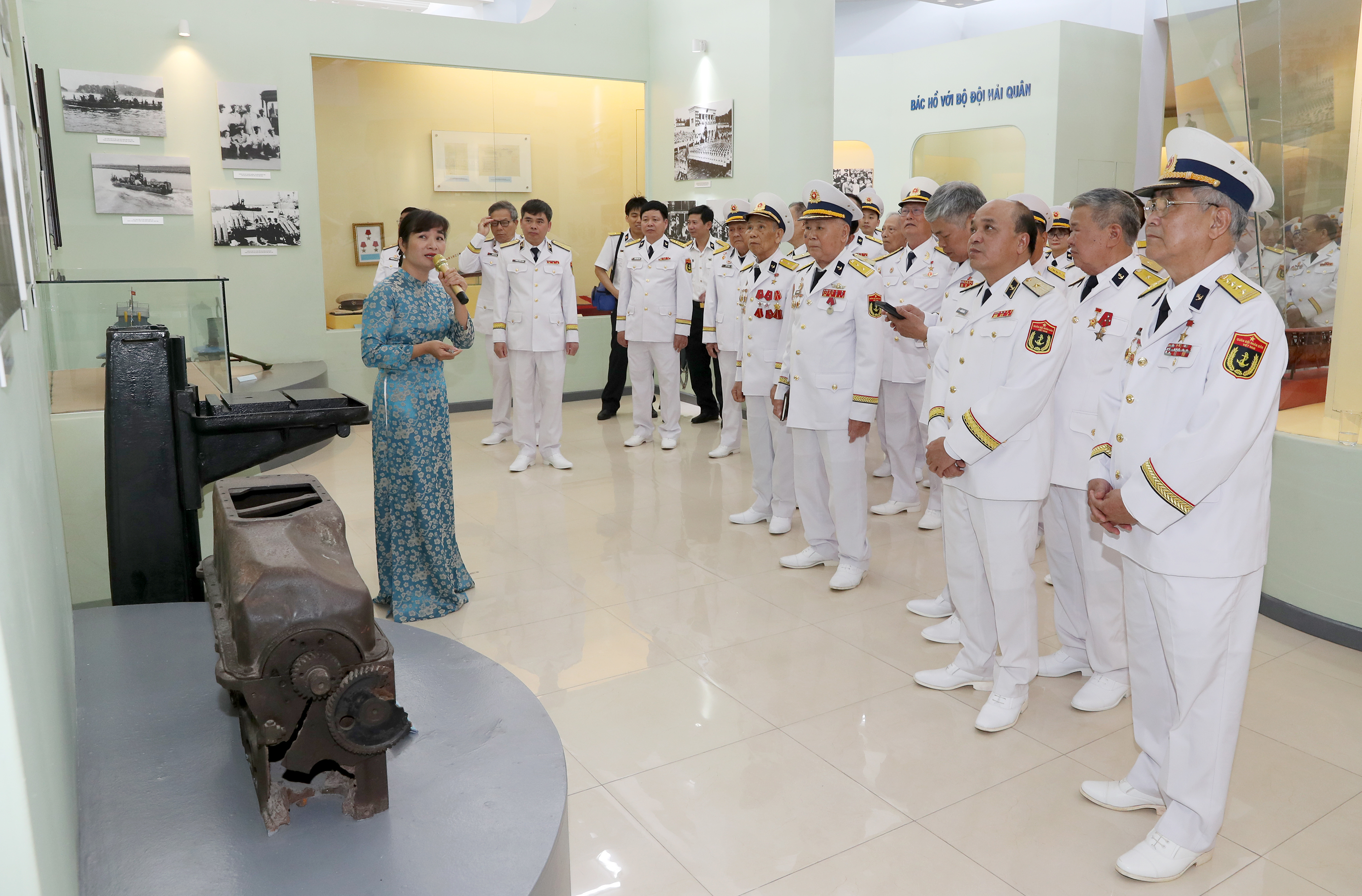 Đoàn đại biểu đã tham quan hệ thống trưng bày tại Bảo tàng Hải quân; nghe giới thiệu về các tư liệu, hiện vật, những chiến công oanh liệt của Hải quân nhân dân Việt Nam.