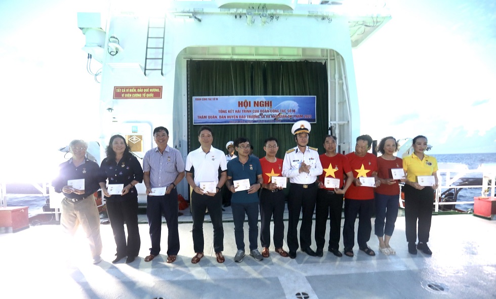 Kết thúc chuyến công tác, Quân chủng Hải quân đã trao Kỷ niệm chương “Vì sự nghiệp bảo vệ chủ quyền biển, đảo’’ và Huy hiệu “Chiến sĩ Trường Sa’’ tặng các đại biểu tham gia đoàn công tác.