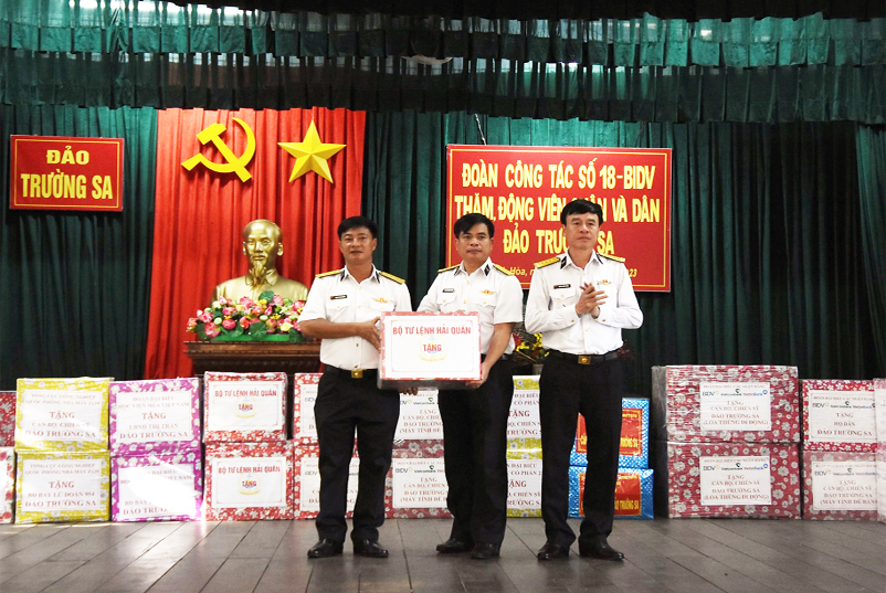 Tại mỗi điểm đảo, đoàn được nghe báo cáo về tình hình sinh hoạt, đời sống của cán bộ, chiến sĩ. Thủ trưởng đoàn công tác đã động viên và chúc sức khỏe cán bộ, chiến sĩ và nhân dân các đảo, nhà giàn; mong các đồng chí luôn vững vàng ý chí, hoàn thành xuất sắc mọi nhiệm vụ được giao. Đoàn đã tặng quà; tổ chức biểu diễn, giao lưu văn nghệ với cán bộ, chiến sĩ và nhân dân trên các điểm đảo.