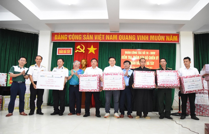 Đại diện các ngân hàng tặng quà cán bộ, chiến sĩ đảo Đá Tây A