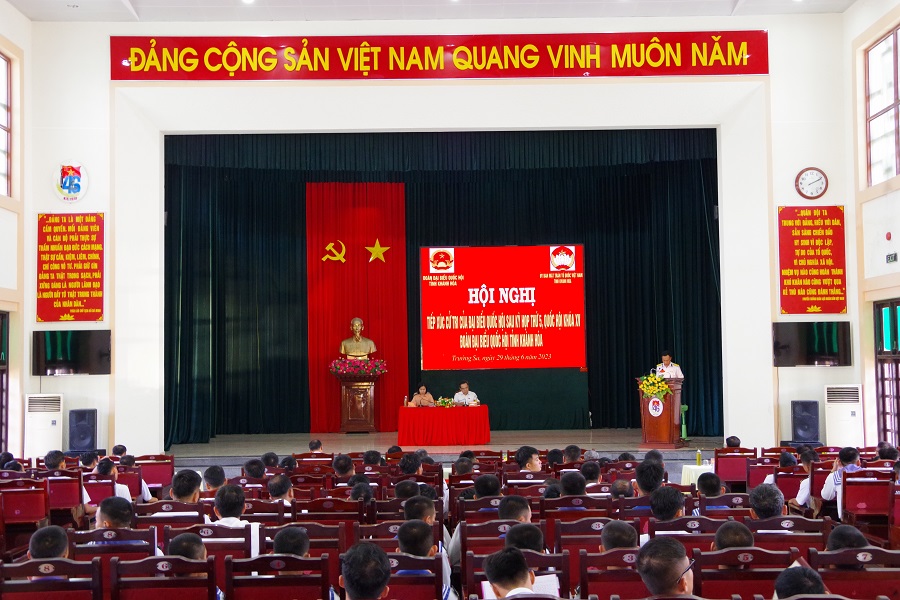 Chiều 29/6, tại Khánh Hòa, đoàn đại biểu Quốc hội tỉnh Khánh Hòa gồm ông Lê Hữu Trí, Phó trưởng đoàn đại biểu Quốc hội chuyên trách tỉnh Khánh Hòa và bà Hà Hồng Hạnh, Chủ tịch Hội Nông dân tỉnh đã tiếp xúc với 250 cử tri huyện Trường Sa sau kỳ họp thứ 5, Quốc hội Khóa XV.