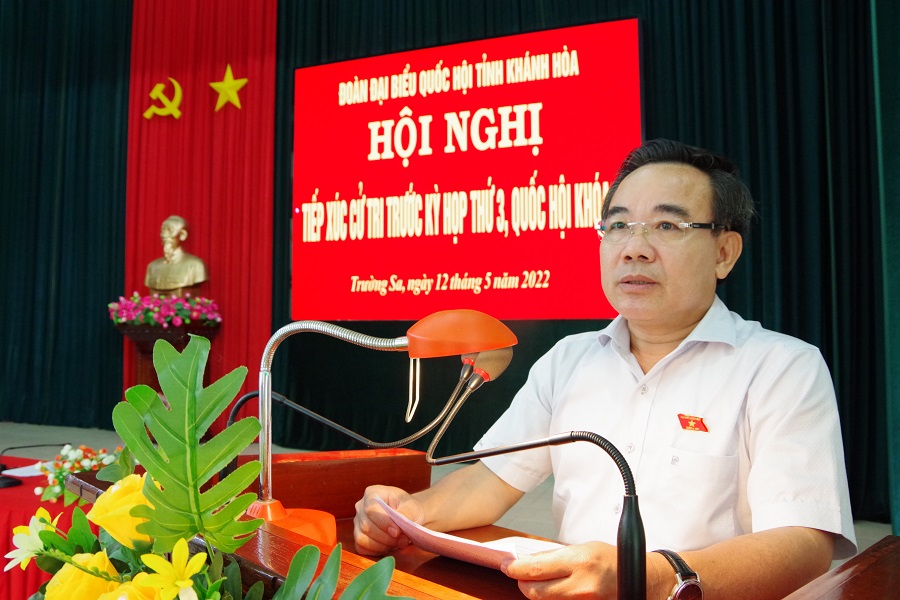 Sáng 12/5, đoàn đại biểu Quốc hội tỉnh Khánh Hòa do ông Lê Hữu Trí, Phó trưởng đoàn chuyên trách Đoàn đại biểu Quốc hội tỉnh dẫn đầu, đã có buổi tiếp xúc với hơn 200 đại diện cử tri huyện đảo Trường Sa trước kỳ họp thứ 3, Quốc hội khóa XV.