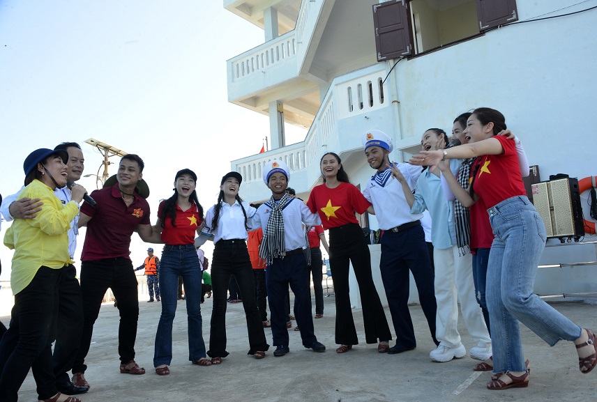 Các văn nghệ sĩ giao lưu với chiến sĩ Trường Sa