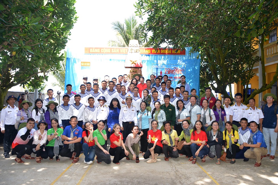 Đoàn công tác chụp ảnh lưu niệm với cán bộ, chiến sĩ đảo An Bang