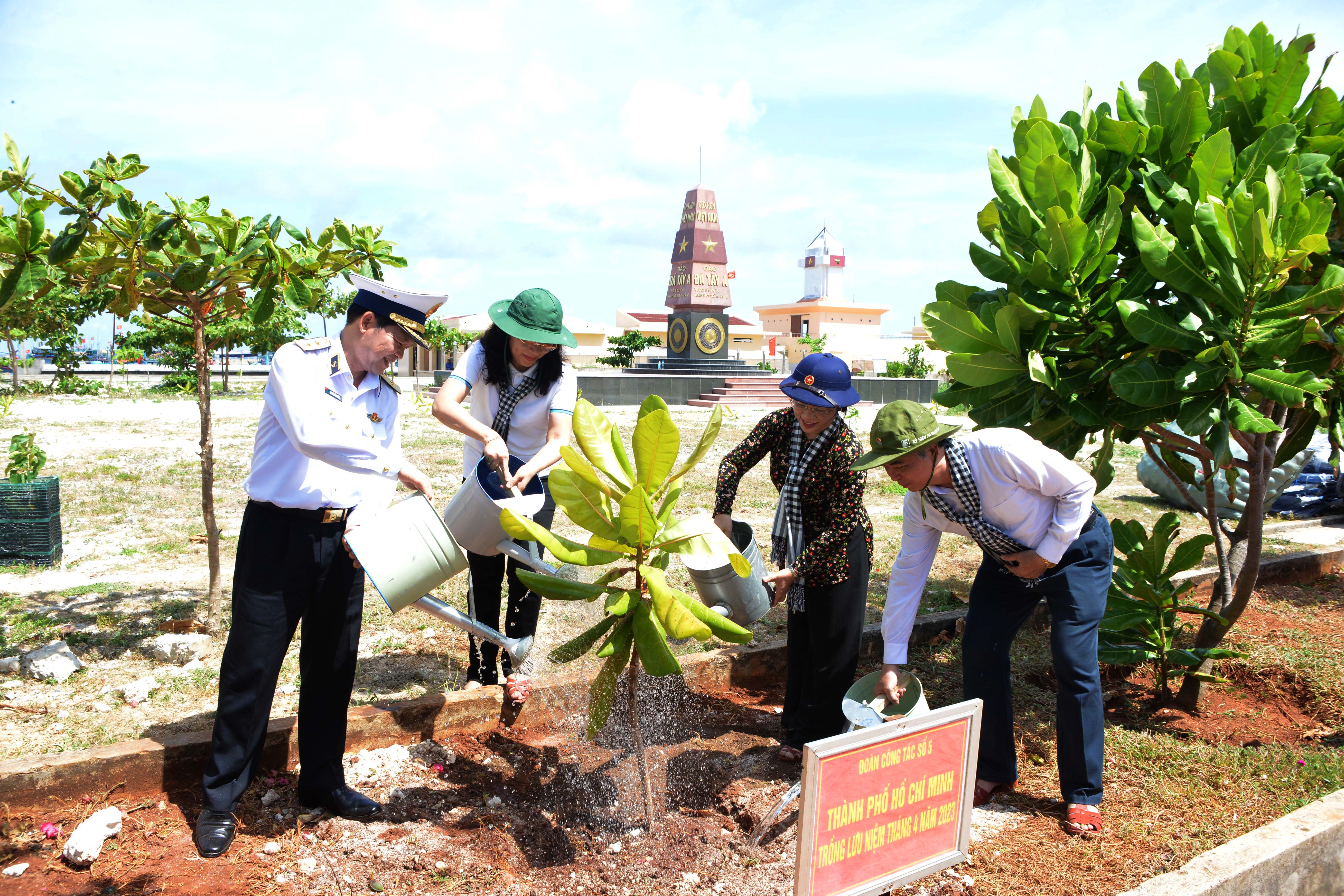 Hưởng ứng chương trình “Vì Trường Sa xanh”, đoàn công tác đã tặng Vùng 4 Hải quân 1 vườn cây ươm giống và tham gia trồng cây xanh trên đảo Sinh Tồn…