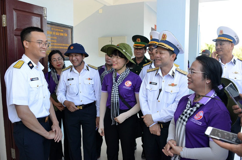 Chính ủy Hải quân và lãnh đạo TP. Hồ Chí Minh trao đổi với bác sĩ Bệnh xá đảo Sinh Tồn