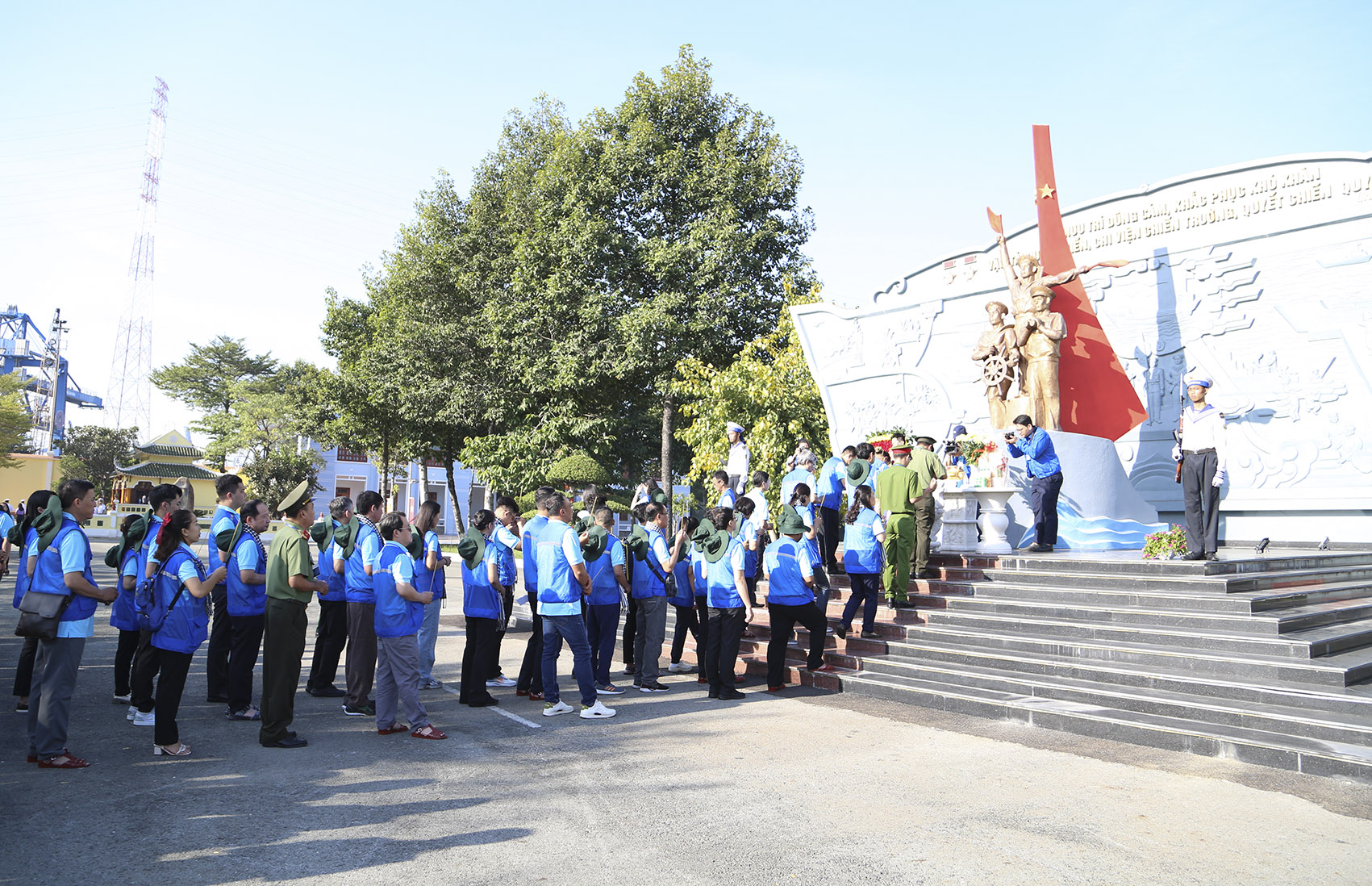 Trước khi lên tàu, đoàn đại biểu đã dâng hương, dâng hoa tưởng niệm tại Tượng đài Đoàn tàu Không số ở Lữ đoàn 125 Hải quân.