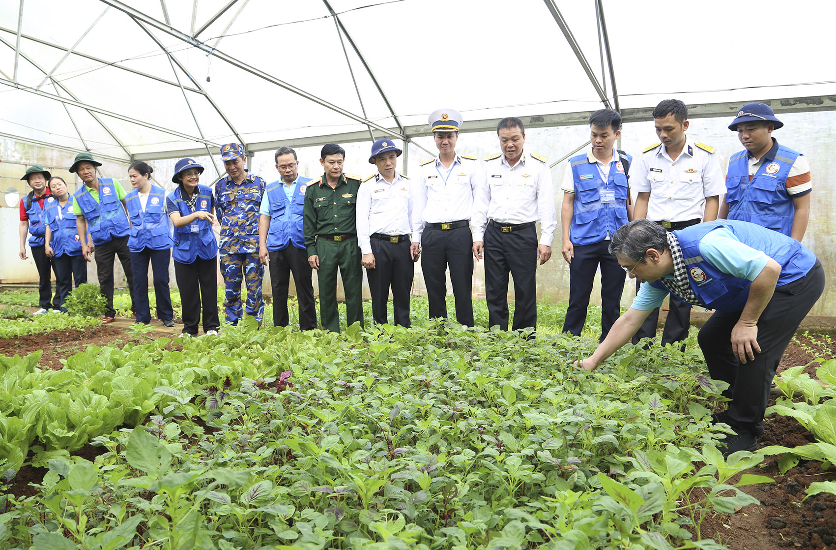 Đại biểu đoàn công tác thăm vườn tăng gia - công trình của TP. Hồ Chí Minh tặng Trạm ra đa 610 năm 2019