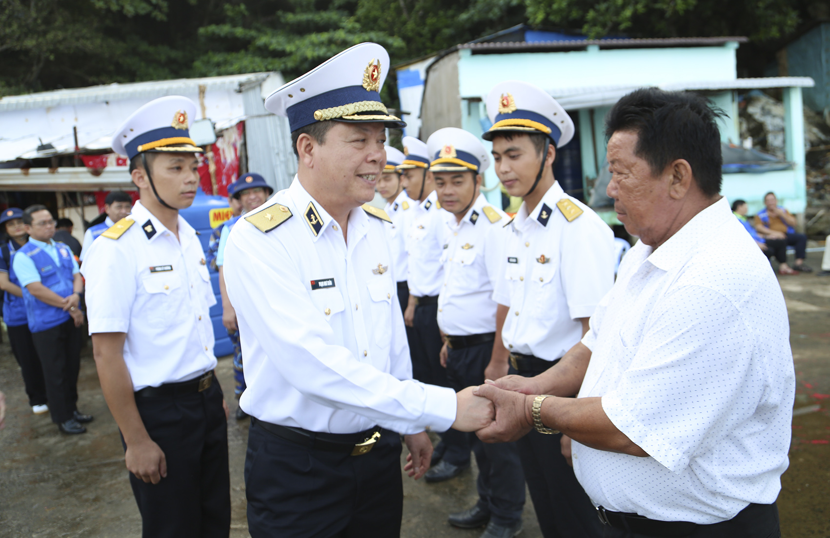 Chuẩn Đô đốc Phạm Như Xuân trao quà của Bộ Tư lệnh Hải quân tặng quân, dân đảo Hòn Chuối