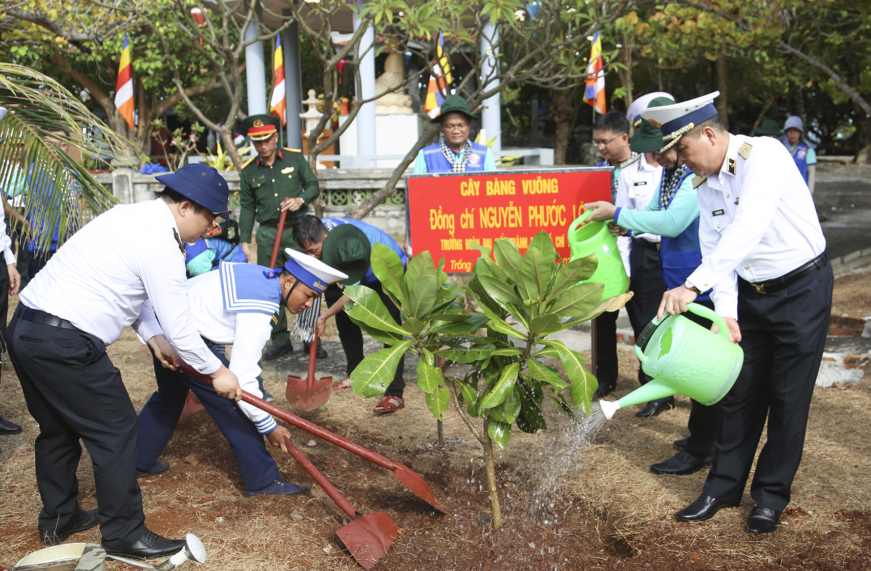 Thủ trưởng đoàn trồng cây lưu niệm tại thị trấn Trường Sa, tỉnh Khánh Hòa