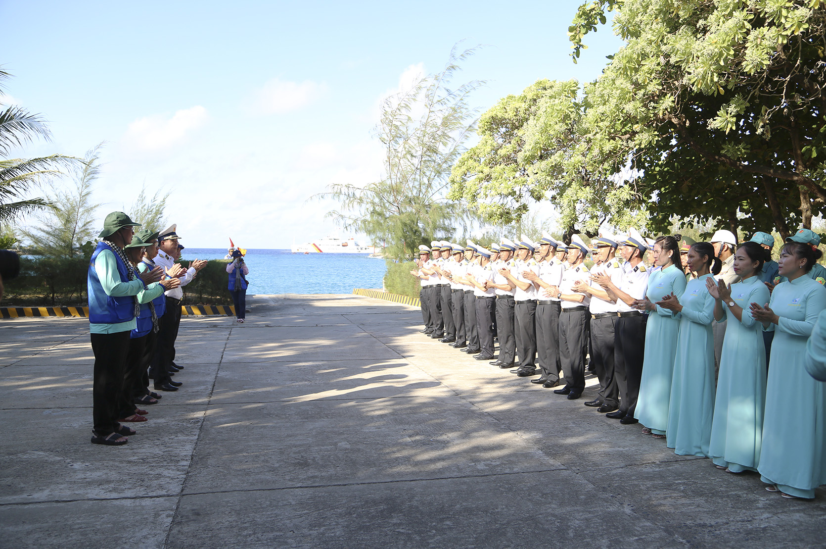 Quân, dân xã đảo Sinh Tồn đón đoàn