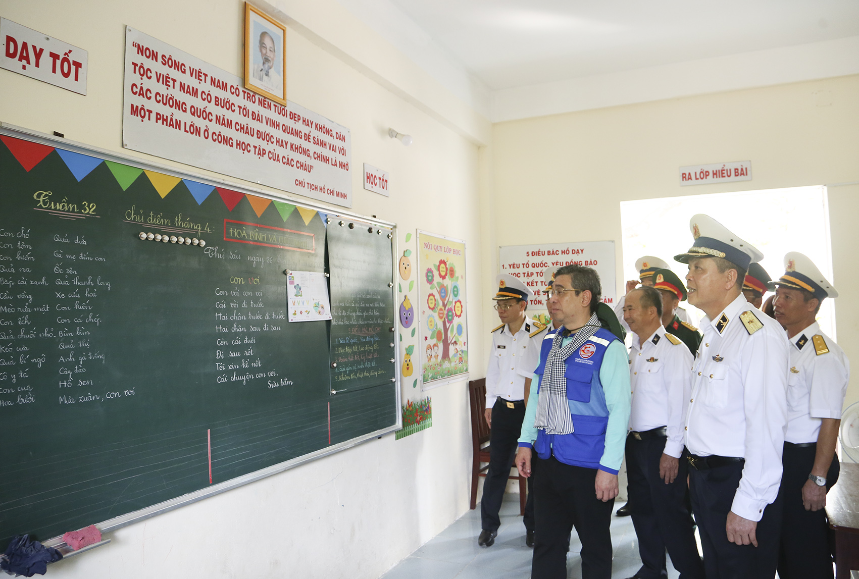 Các đại biểu thăm lớp học trên xã đảo Sinh Tồn