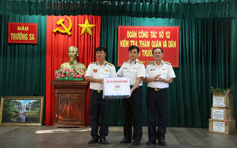 Chuẩn Đô đốc Phạm Văn Luyện tặng quà cán bộ, chiến sĩ đảo Trường Sa