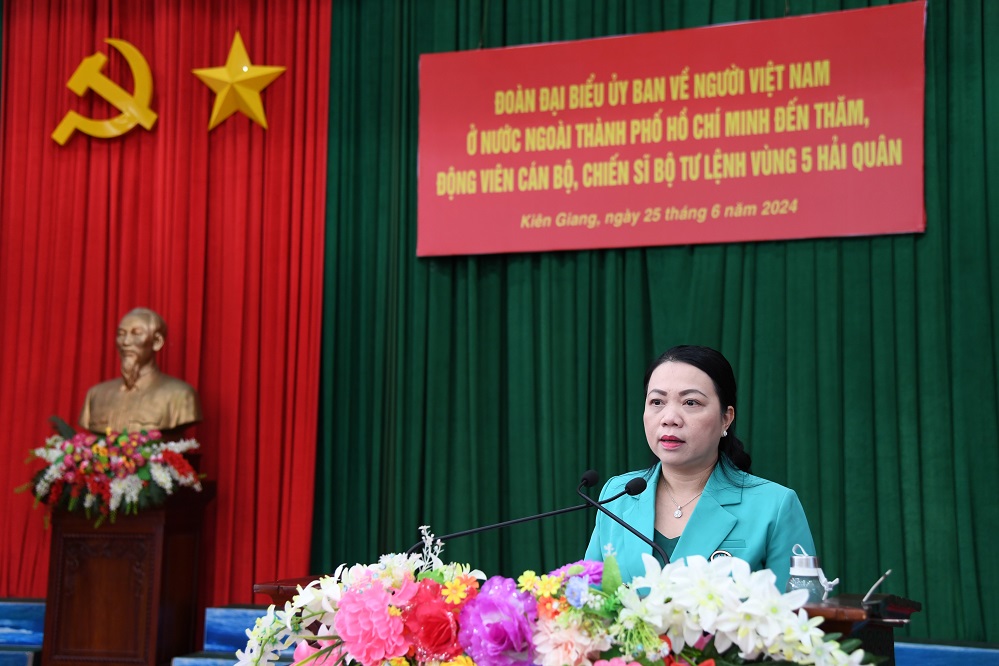 Chiều 25/6, tại TP. Phú Quốc, tỉnh Kiên Giang, đoàn đại biểu của Ủy ban về người Việt Nam ở nước ngoài TP. Hồ Chí Minh do đồng chí Vũ Thị Huỳnh Mai, Chủ nhiệm Ủy ban về người Việt Nam ở nước ngoài TP. Hồ Chí Minh làm trưởng đoàn đã đến thăm Bộ Tư lệnh Vùng 5 Hải quân. Đại tá Lương Quốc Anh, Phó Tư lệnh Vùng chủ trì tiếp đoàn.