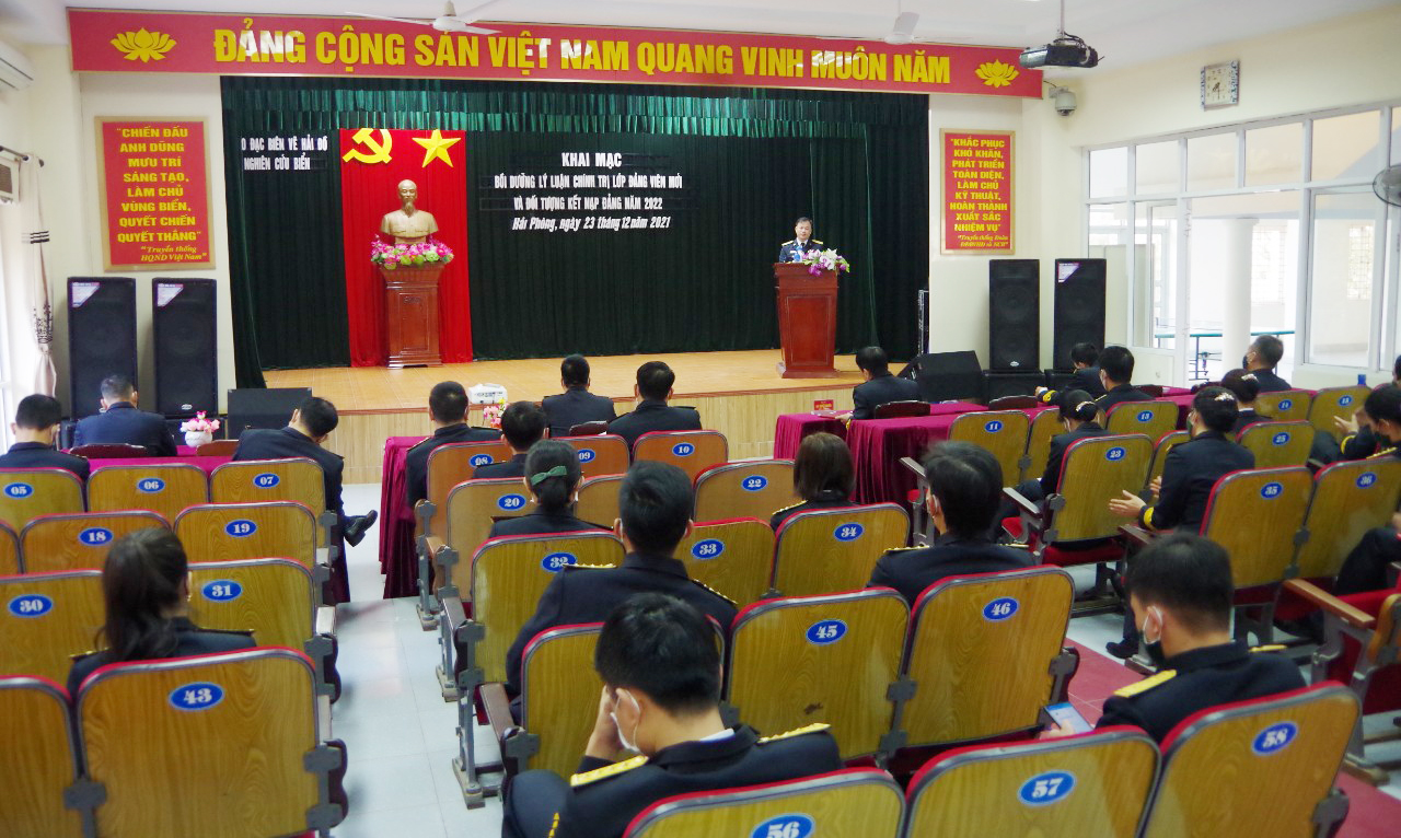 Tham dự lớp bồi dưỡng lý luận chính trị đợt này có 14 đồng chí là đảng viên mới và 9 đồng chí là đối tượng kết nạp đảng năm 2022 thuộc các cơ quan, đơn vị: Đoàn Đo đạc biên vẽ hải đồ và nghiên cứu biển; Cục Chính trị và Viện Kỹ thuật Hải quân.