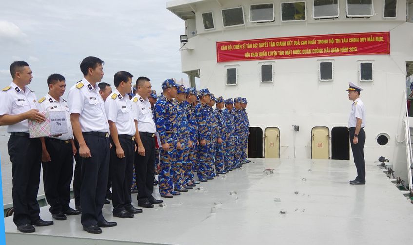 Chiều 29/8, tại Hải Phòng, Đoàn Đo đạc biên vẽ hải đồ và nghiên cứu biển đã tổ chức kiểm tra, động viên cán bộ, chiến sĩ Tàu 632, Hải đội 695 tham gia Hội thi tàu chính quy mẫu mực, Hội thao huấn luyện tàu mặt nước Quân chủng Hải quân năm 2023.