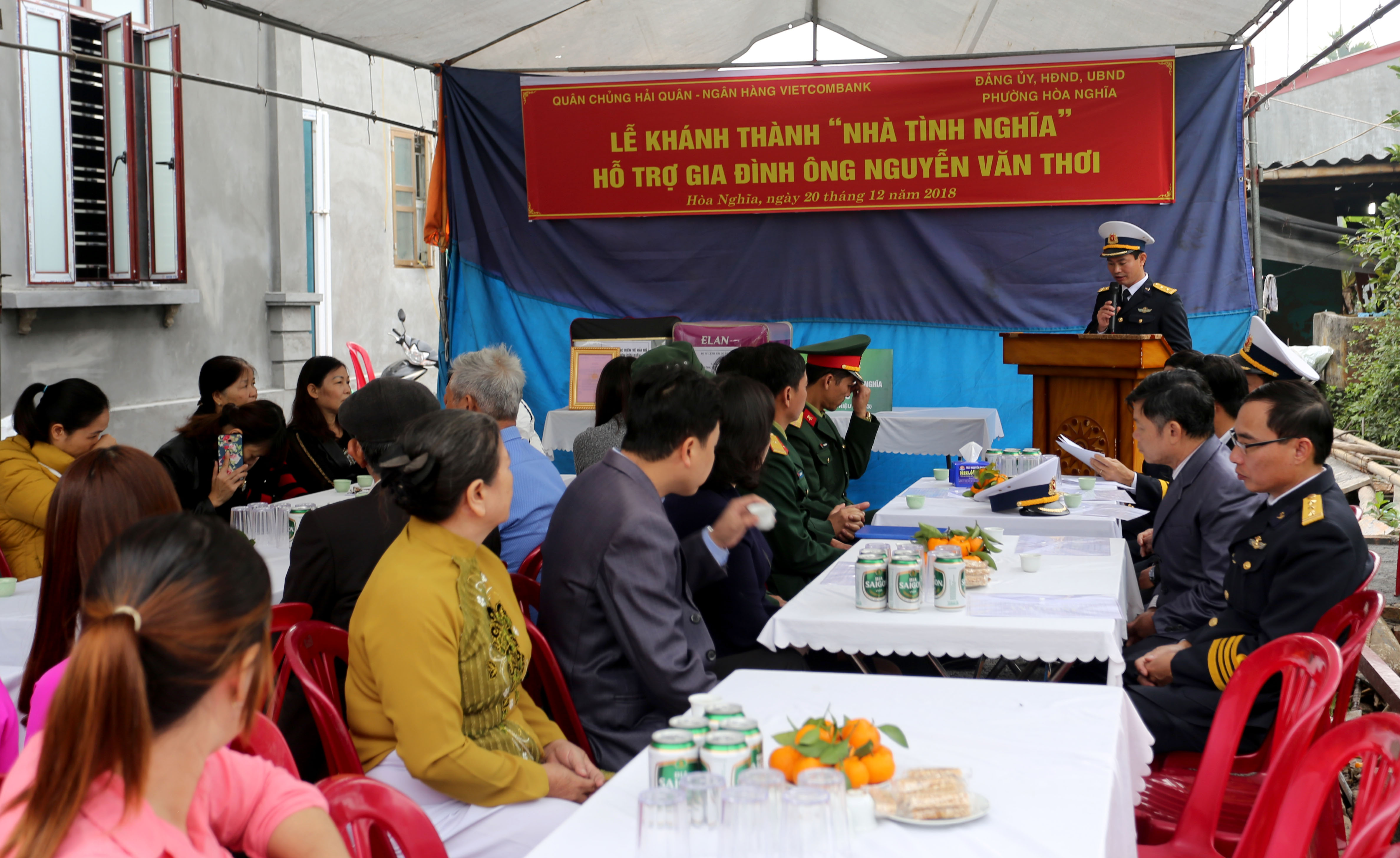 Đây là một trong 10 ngôi nhà mà Ngân hàng Vietcombank tài trợ kinh phí để Quân chủng Hải quân hỗ trợ xây dựng nhà tình nghĩa cho các đối tượng chính sách trong năm 2018.