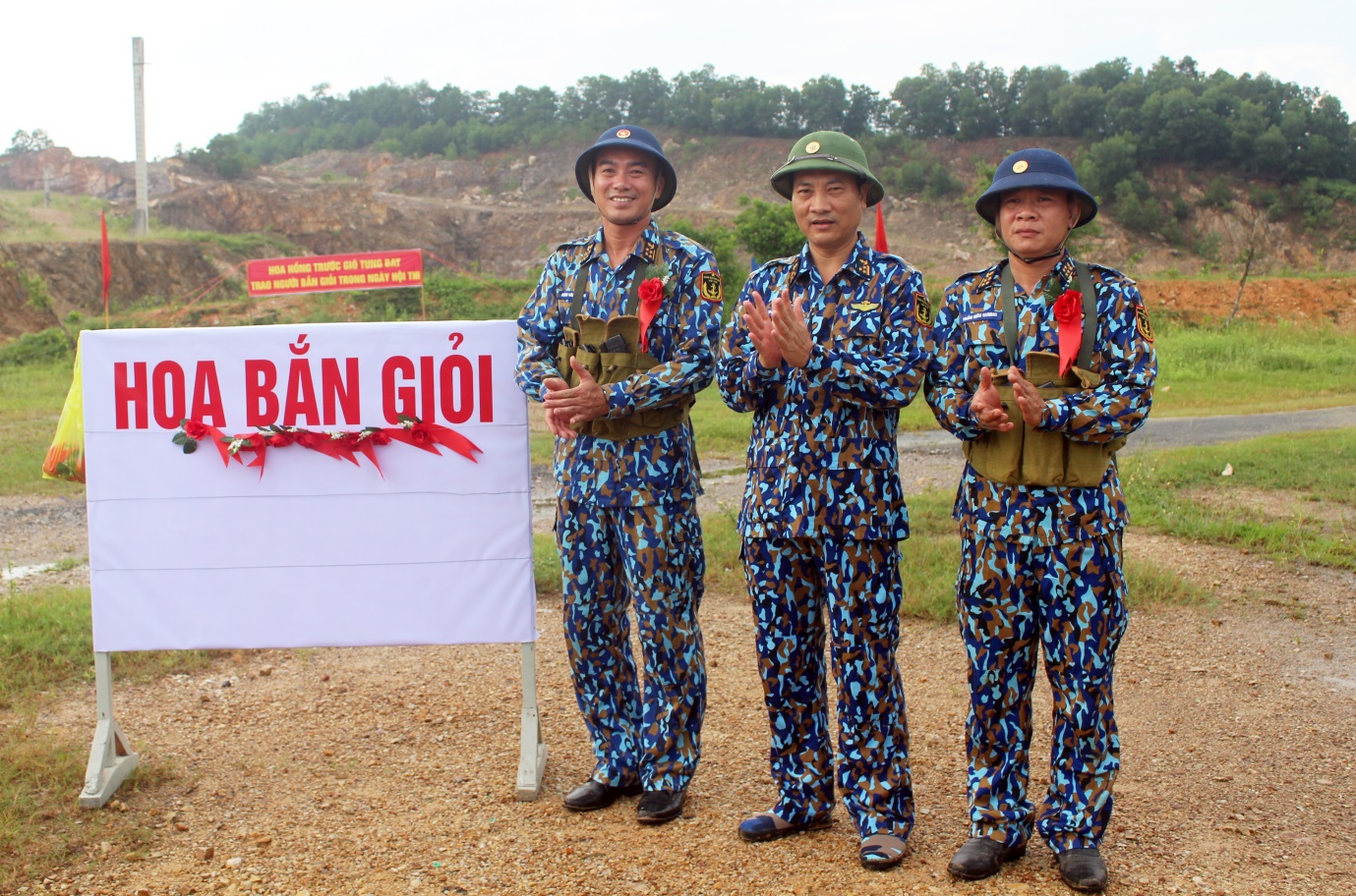 Thủ trưởng Đoàn tặng hoa cho các đồng chí bắn giỏi