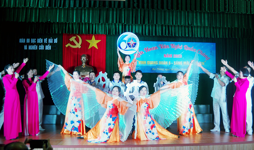 Tối 19/12 tại TP. Hải Phòng, Đoàn Đo đạc biên vẽ hải đồ và nghiên cứu biển, Bộ Tham mưu tổ chức Liên hoan văn nghệ quần chúng năm 2023 với chủ đề “Vinh quang Đoàn 6 - Sáng mãi niềm tin”.