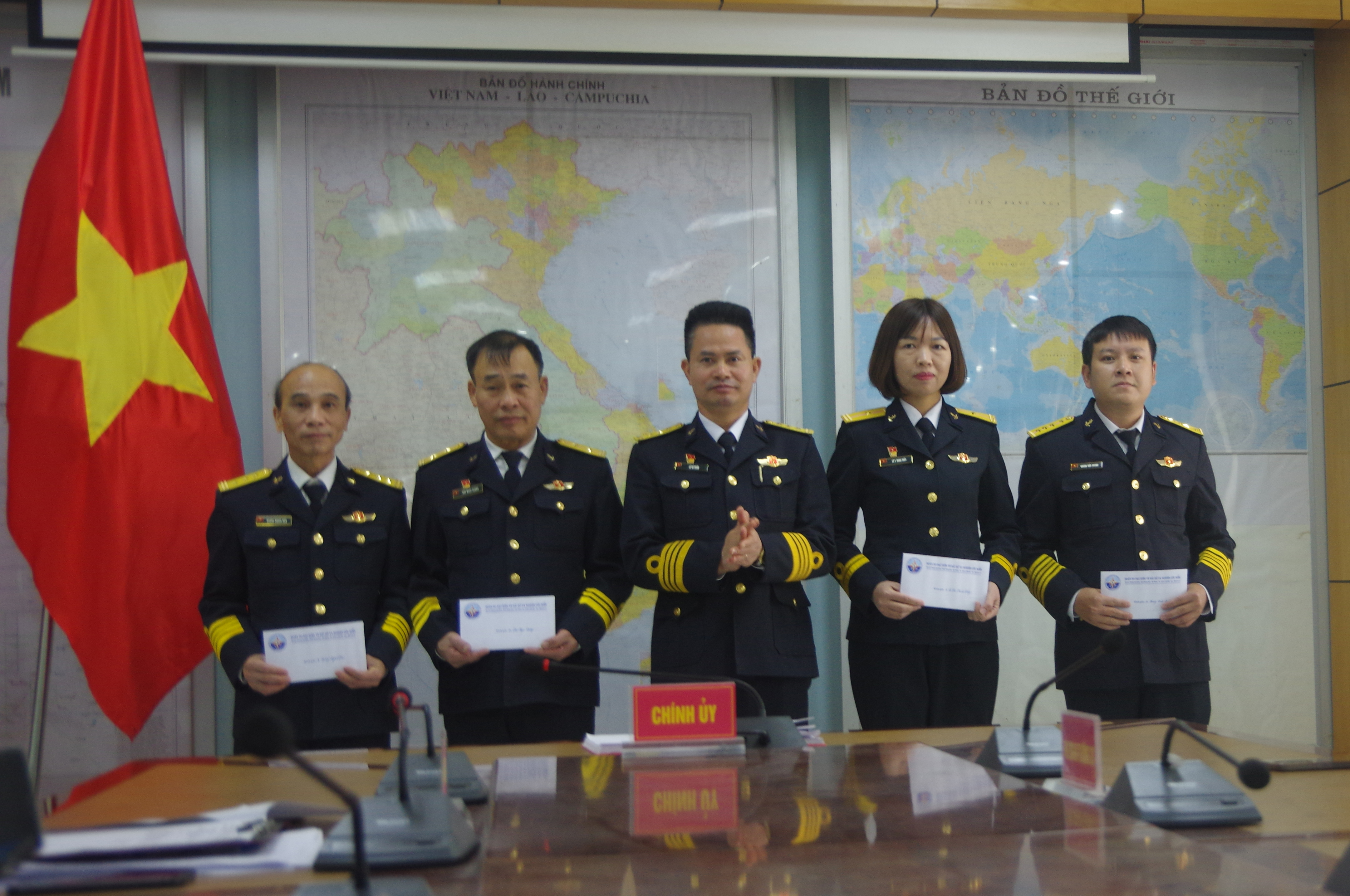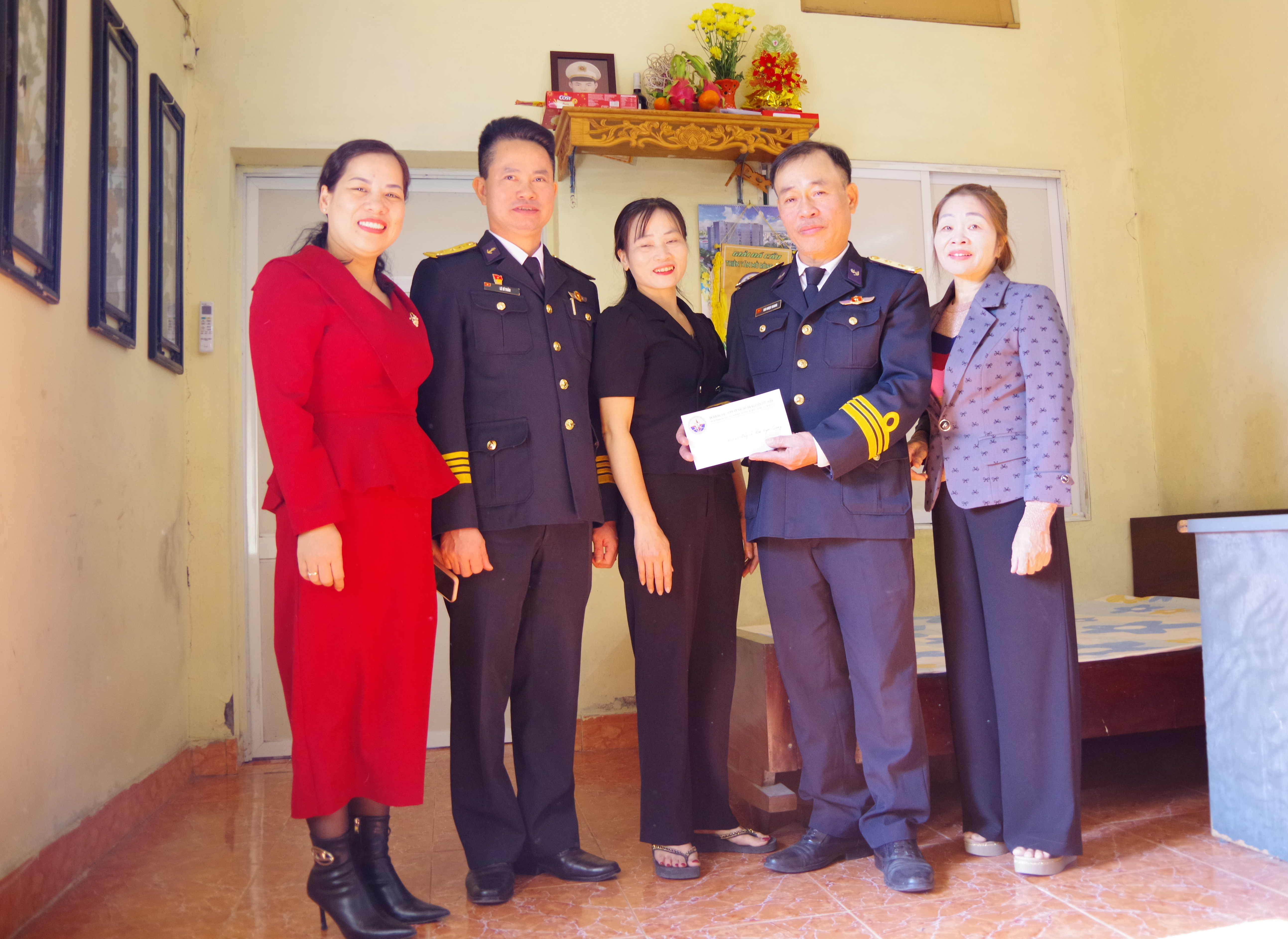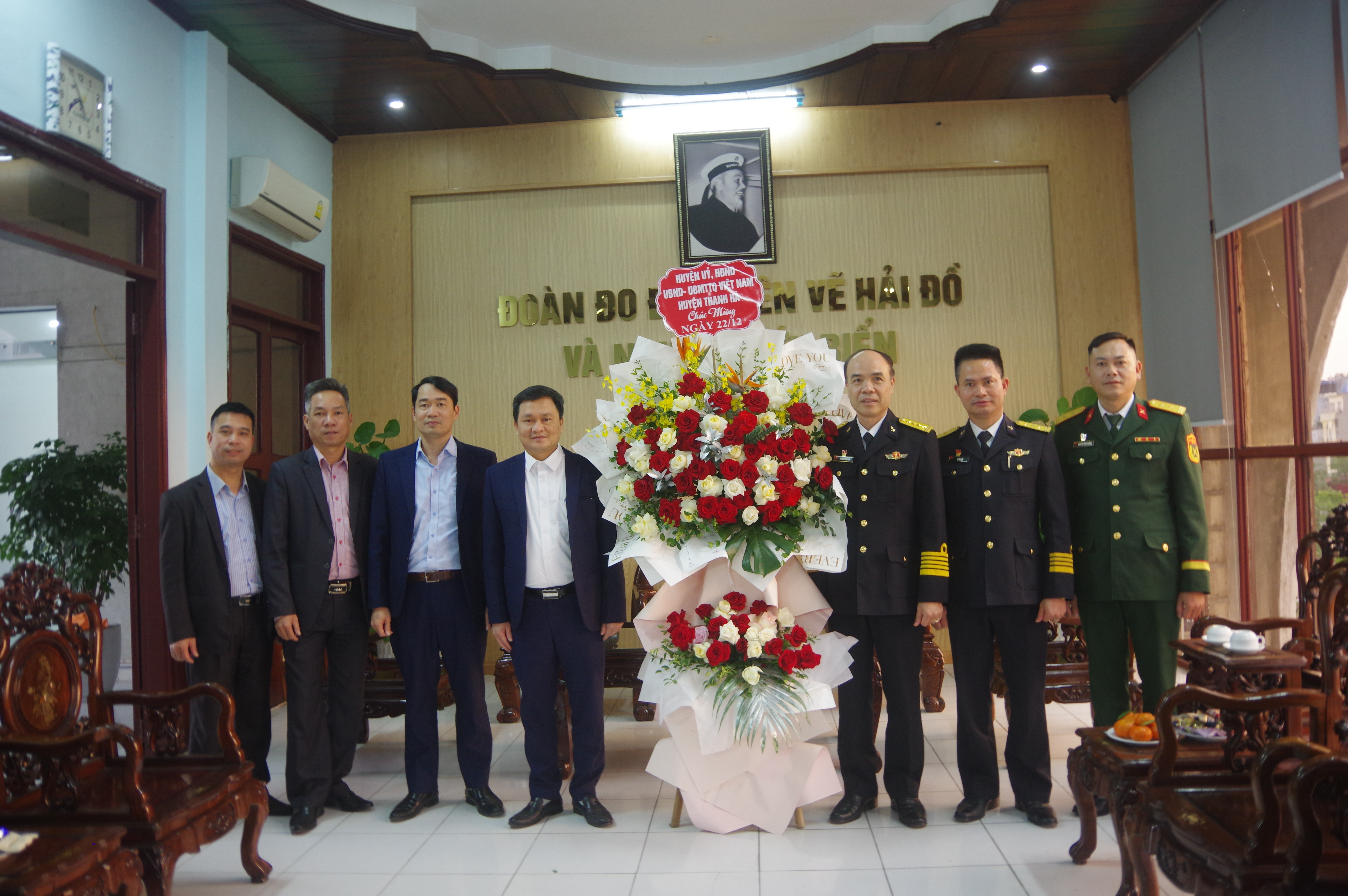 Nhân kỷ niệm 80 năm Ngày thành lập Quân đội nhân dân Việt Nam 35 năm Ngày hội quốc phòng toàn dân, ngày 20/12, Đảng ủy, chỉ huy Đoàn Đo đạc biên vẽ hải đồ và nghiên cứu biển, Bộ Tham mưu Hải quân đã gặp mặt, động viên và trao 5 phần quà tặng quân nhân là thương binh, con liệt sĩ và gia đình chính sách trong đơn vị.