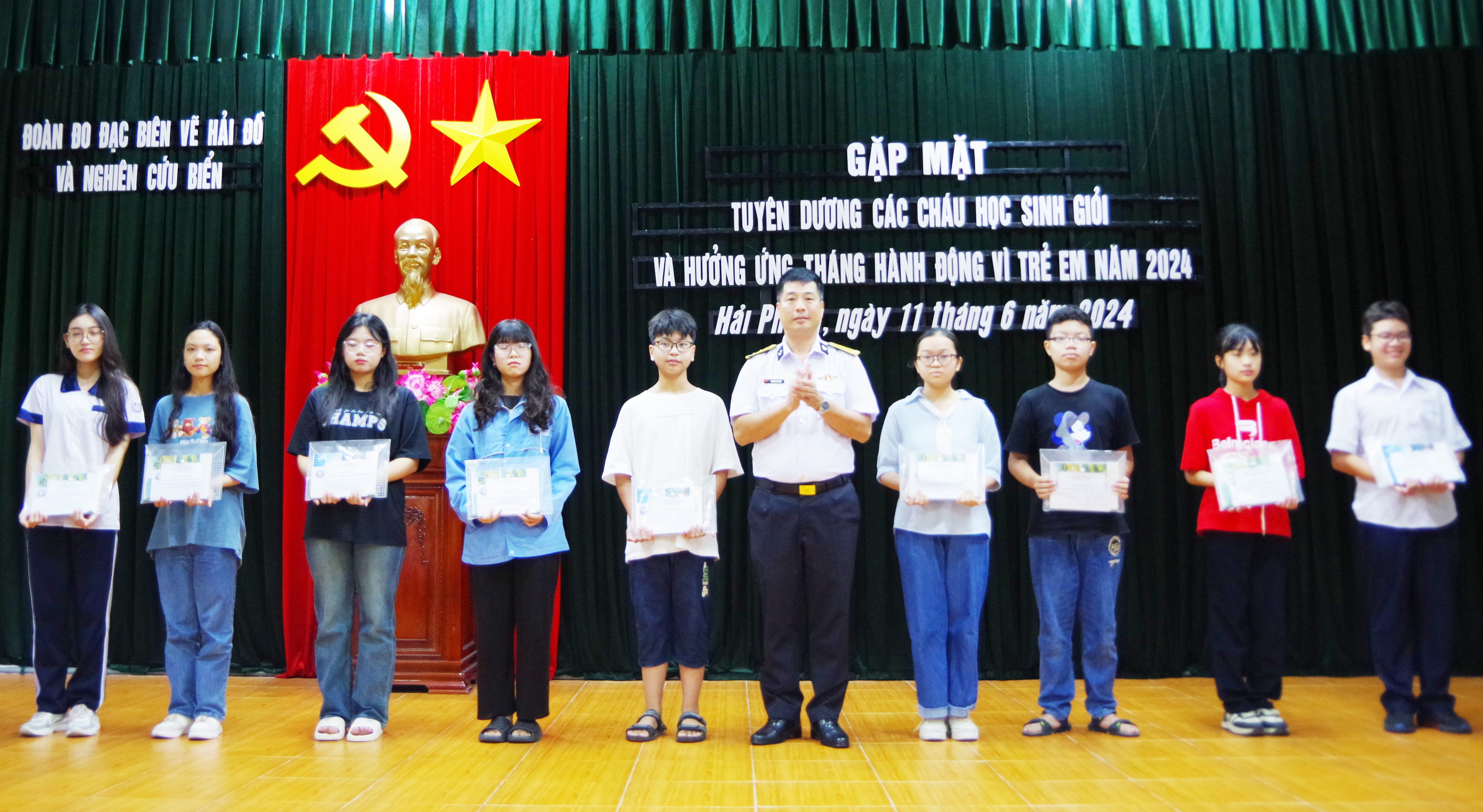 Ngày 11/6, tại Hải Phòng, Đoàn Đo đạc biên vẽ hải đồ và nghiên cứu biển, Bộ Tham mưu Hải quân tổ chức gặp mặt trao tặng quà cho các cháu là con quân nhân trong đơn vị đạt giải trong các kỳ thi học sinh giỏi các cấp năm 2024; các cháu có hoàn cảnh đặc biệt khó khăn, các cháu là con ngư dân được đơn vị nhận đỡ đầu.