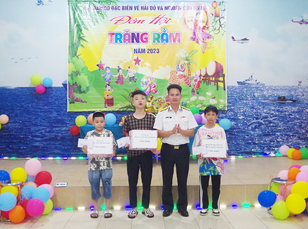 Dịp này, đơn vị đã tặng 351 phần quà Trung thu cho các cháu thiếu niên, nhi đồng và trao tặng 2 phần quà từ quỹ của “Câu lạc bộ Tuổi trẻ vì biển, đảo quê hương” với tổng số tiền trị giá hơn 78 triệu đồng.