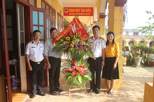 Thượng tá Đinh Ngọc Quang, Phó Chính ủy Đoàn tặng hoa chúc mừng Trường cao đẳng nghề Bách nghệ Hải Phòng