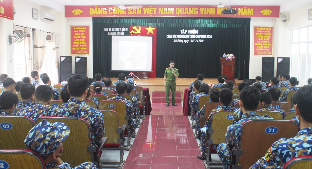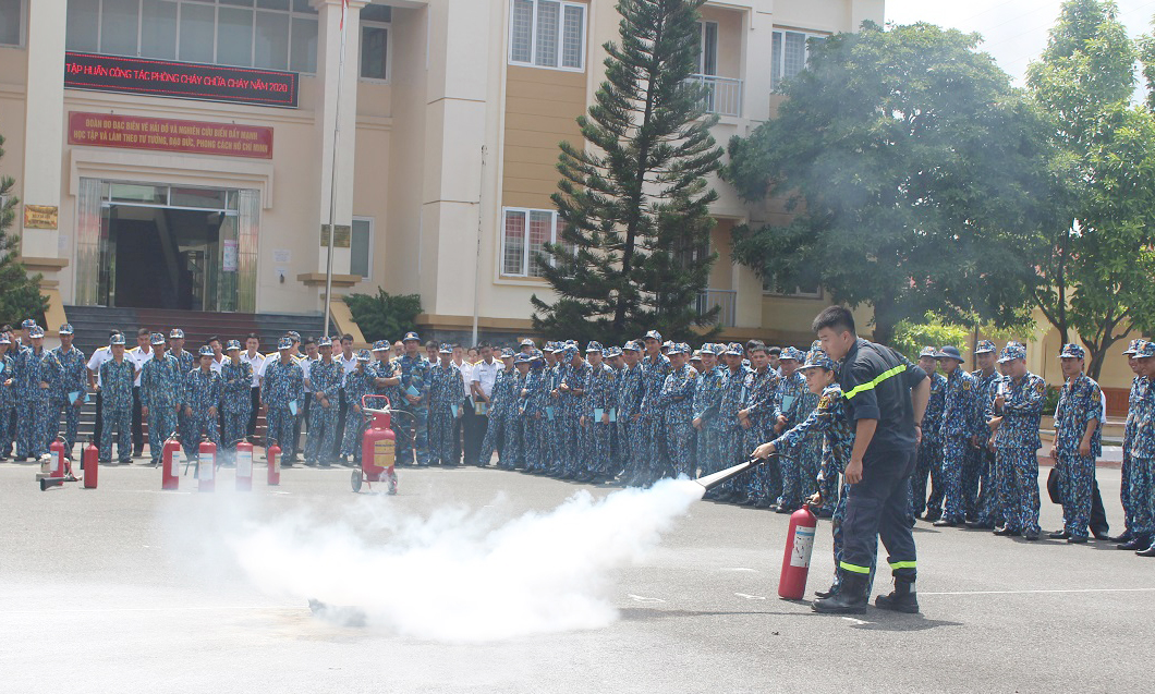 Đoàn Đo đạc biên vẽ hải đồ và nghiên cứu biển tập huấn công tác phòng cháy, chữa cháy
