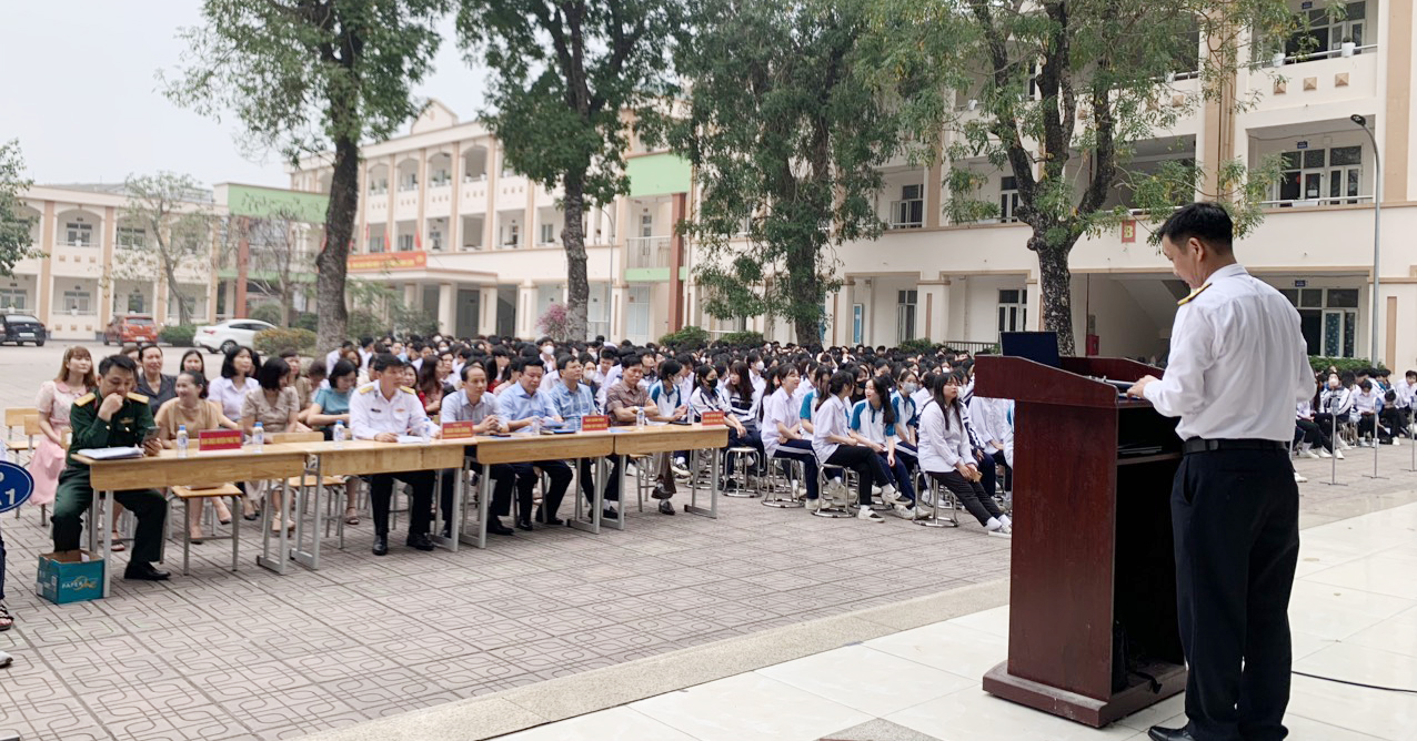 Báo cáo viên đơn vị đã thông tin tới cán bộ, giáo viên và học sinh về tình hình biển, đảo hiện nay; quan điểm của Đảng, Nhà nước ta trong bảo vệ chủ quyền biển, đảo cuả Tổ quốc; khái quát về Học viện Hải quân và những điều cần biết để trở thành sĩ quan trong Quân đội nói chung và Hải quân nói riêng.