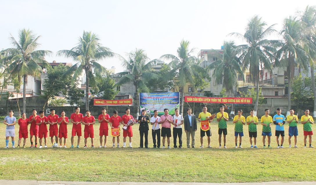 Thủ trưởng Đoàn tặng hoa, động viên các đội bóng đá