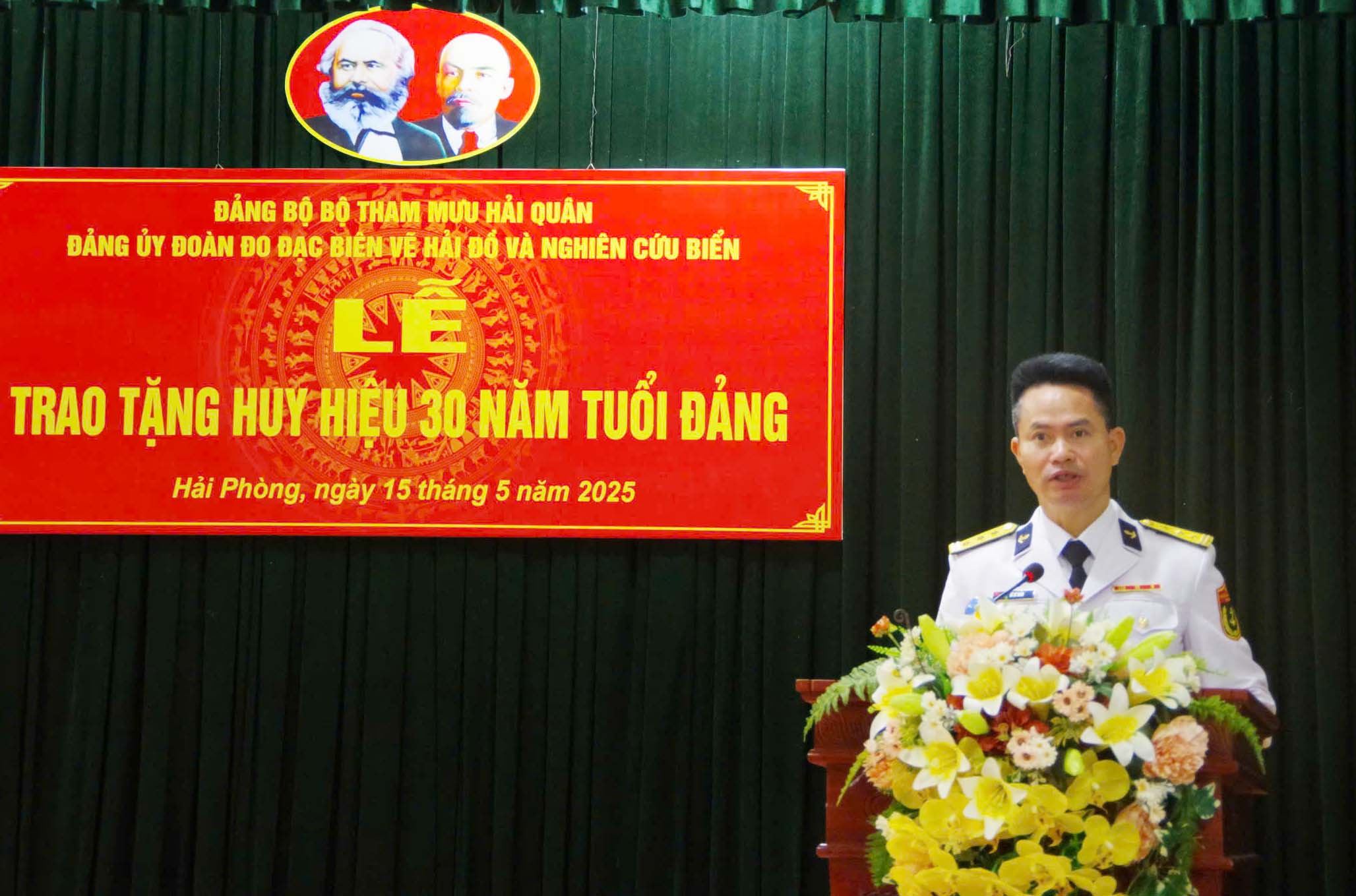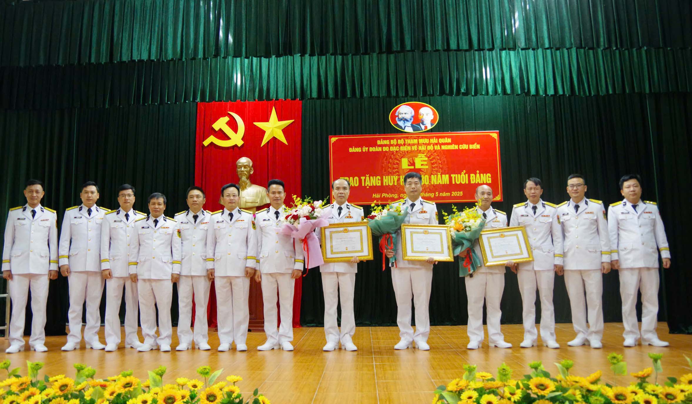 Ngày 15/5, tại Hải Phòng, Đảng ủy Đoàn Đo đạc biên vẽ hải đồ và nghiên cứu biển (Đảng bộ Bộ Tham mưu Hải quân) tổ chức Lễ trao tặng Huy hiệu 30 năm tuổi Đảng đợt kỷ niệm 135 năm Ngày sinh Chủ tịch Hồ Chí Minh (19/5/1890 - 19/5/2025) cho 3 đồng chí đảng viên. Thượng tá Lê Sĩ Toản, Bí thư Đảng ủy Đoàn dự và trao huy hiệu.
