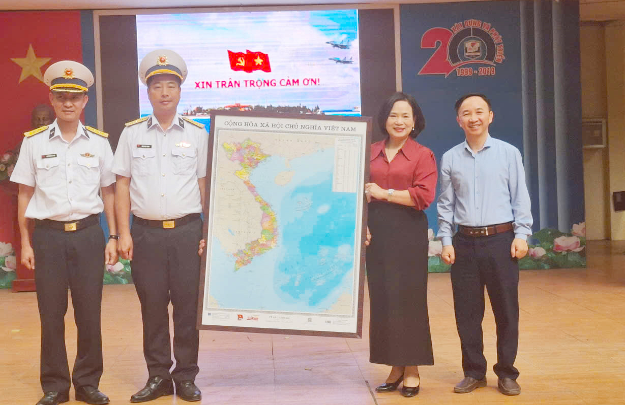 Chỉ huy Đoàn tặng Ban giám hiệu trường THPT Trung Giã, Sóc Sơn, TP Hà Nội bản đồ Việt Nam