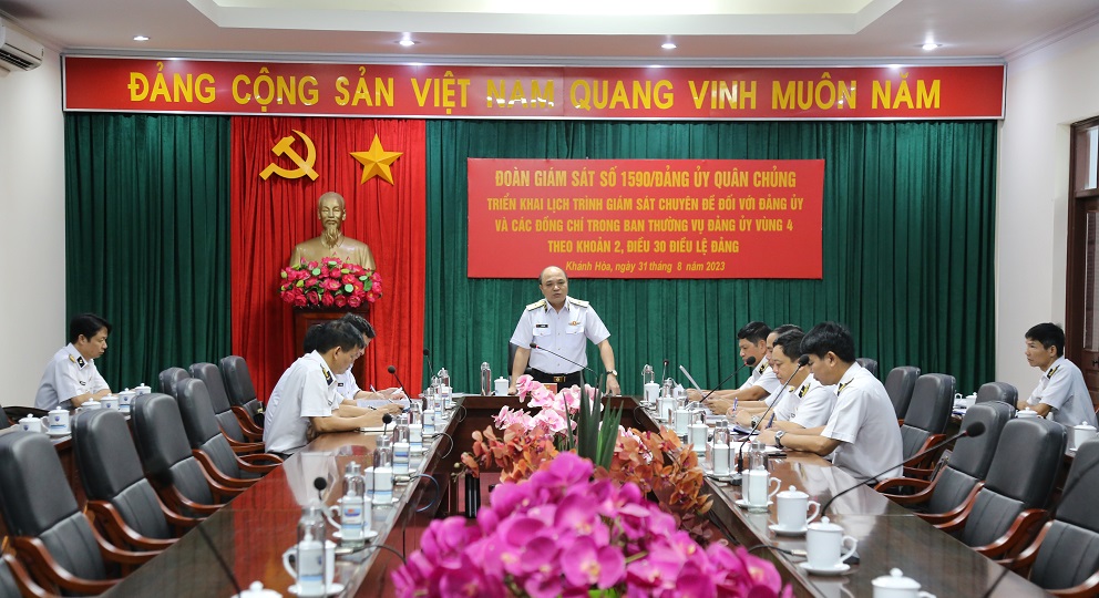 Sáng 31/8, tại TP. Cam Ranh, tỉnh Khánh Hoà, đoàn giám sát Đảng ủy Quân chủng Hải quân tổ chức Hội nghị triển khai lịch trình giám sát Chuyên đề của Thường vụ Đảng ủy Quân chủng Hải quân đối với Đảng ủy và các đồng chí ủy viên Ban thường vụ Đảng ủy Vùng 4 theo khoản 2, Điều 30 Điều lệ Đảng. Chuẩn Đô đốc Đỗ Văn Yên, Ủy viên Thường vụ Đảng uỷ Quân chủng, Phó Chính ủy Hải quân, Chủ nhiệm Uỷ ban kiểm tra Đảng uỷ Quân chủng chủ trì.