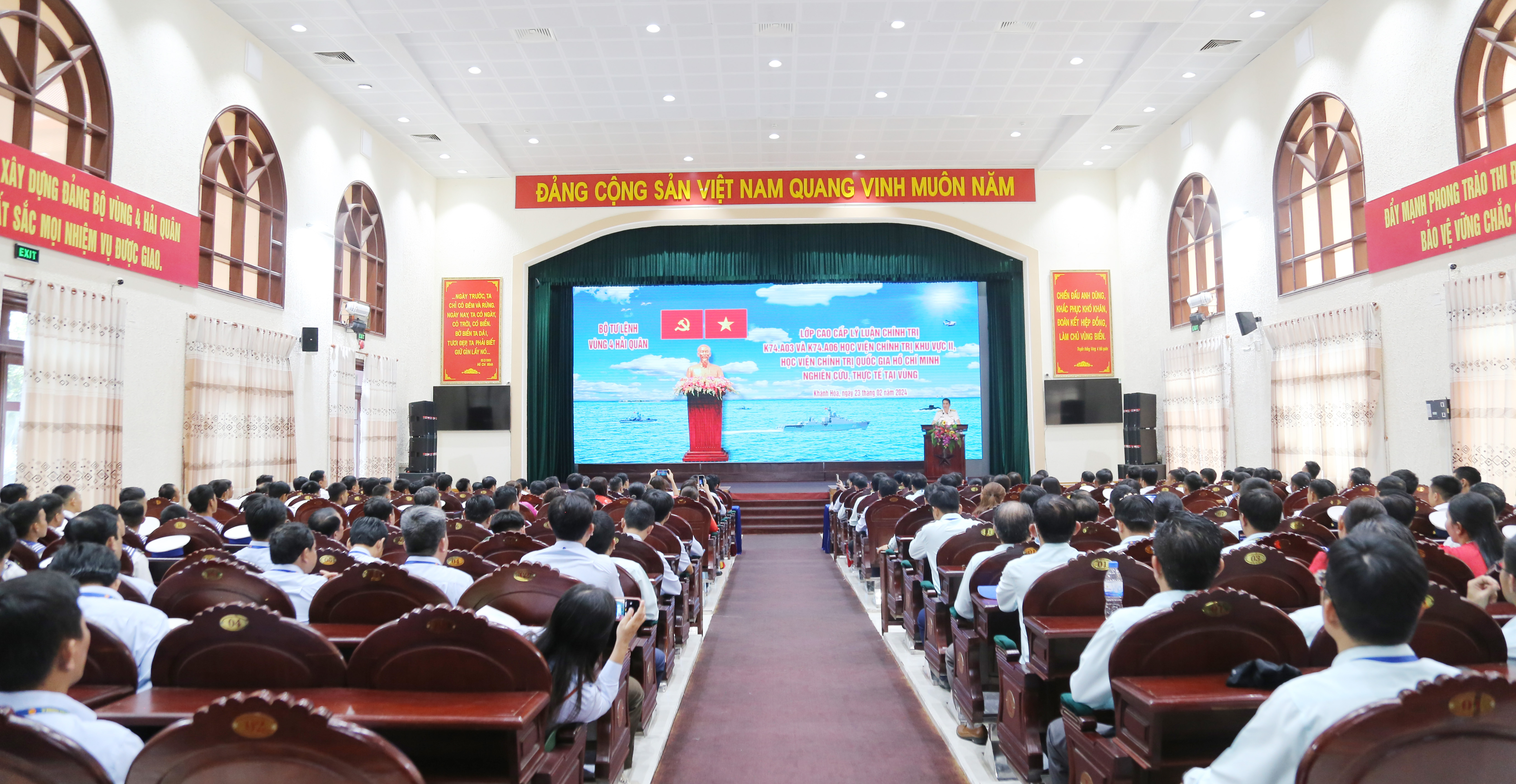 Ngày 23/2, tại TP. Cam Ranh, tỉnh Khánh Hoà, đoàn cán bộ, học viên lớp cao cấp lý luận chính trị (K74.A03 và K74. A06) Học viện Chính trị Khu vực II, thuộc Học viện Chính trị Quốc gia Hồ Chí Minh do đồng chí Nguyễn Thị Thanh Hà, Chủ nhiệm lớp làm trưởng đoàn cùng 47 học viên đã tới tham quan, nghiên cứu thực tế tại Vùng 4 Hải quân. Đại tá Nguyễn Hữu Minh, Phó Chính ủy Vùng chủ trì tiếp đoàn.