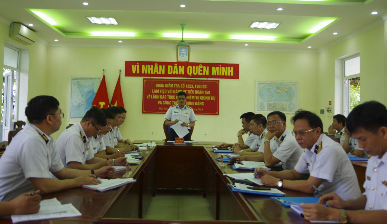 Sáng 27/4, tại huyện Thủy Nguyên, TP. Hải Phòng, đoàn kiểm tra của Thường vụ Đảng Quân chủng Hải quân đã làm việc với Tiểu đoàn 158 nắm tình hình về lãnh đạo thực hiện nhiệm vụ chính trị và công tác xây dựng Đảng bộ từ tháng 1/2022 đến tháng 3/2023.