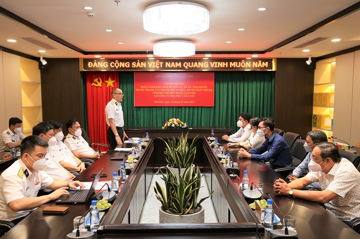 Sáng 25/2, tại TP. Thủ Đức (TP. Hồ Chí Minh), đoàn công tác của UBND huyện Châu Thành, tỉnh Bến Tre do đồng chí Võ Thanh Tùng, Phó Chủ tịch UBND huyện làm trưởng đoàn đã đến thăm và làm việc tại Công ty Hoa tiêu Tân cảng thuộc Tổng công ty (TCT) Tân cảng Sài Gòn. Đại tá Nguyễn Văn Phương, Bí thư Đảng ủy, Chủ tịch Công ty chủ trì tiếp đoàn.