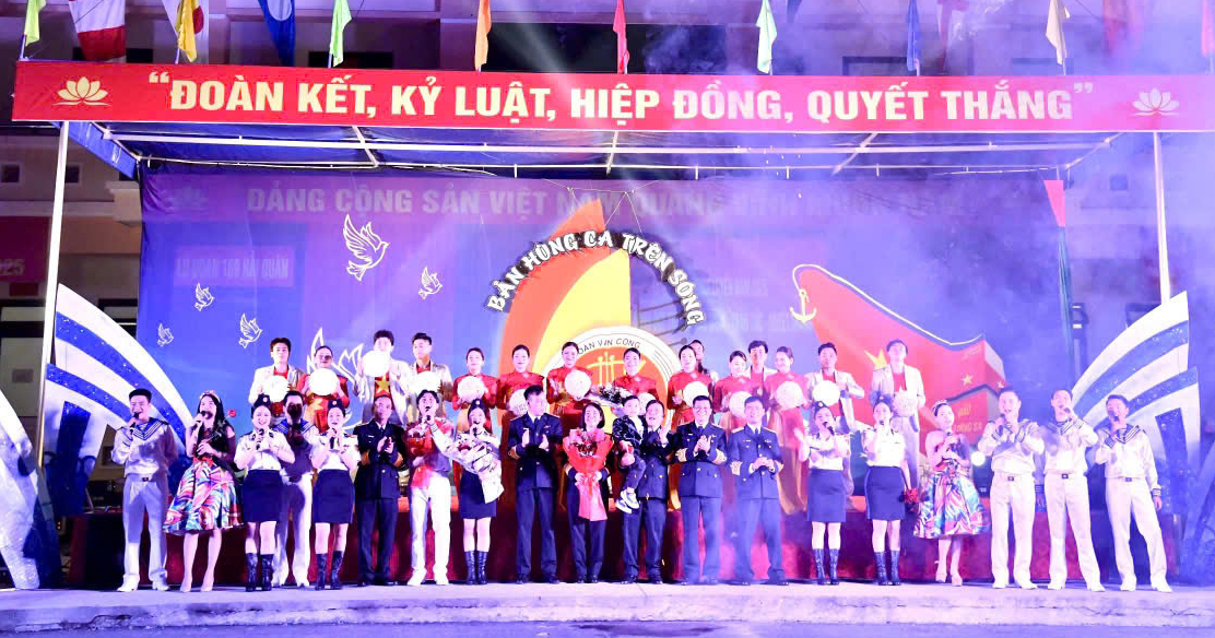 Chương trình nghệ thuật có chủ đề “Bản hùng ca trên sóng” với sự tham gia biểu diễn của gần 40 nghệ sĩ, diễn viên Đoàn Văn công Hải quân; mang đến cho cán bộ, chiến sĩ và nhân dân 15 tiết mục ca, múa, nhạc đặc sắc, được dàn dựng công phu.
