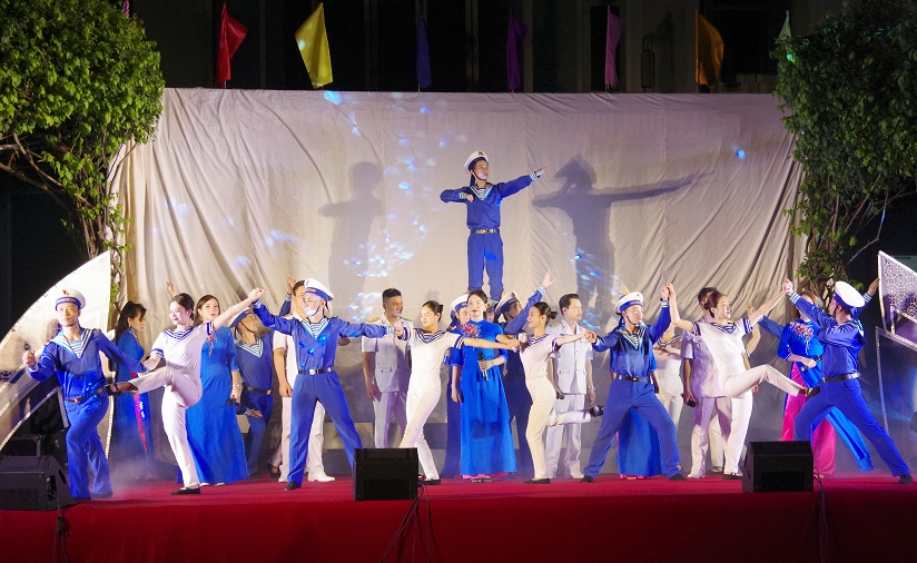 Chương trình nghệ thuật với chủ đề “Bản hùng ca từ cửa biển” với sự tham gia của gần 50 diễn viên đã mang đến cho cán bộ, chiến sĩ 14 tiết mục ca, múa, nhạc đặc sắc được dàn dựng công phu.