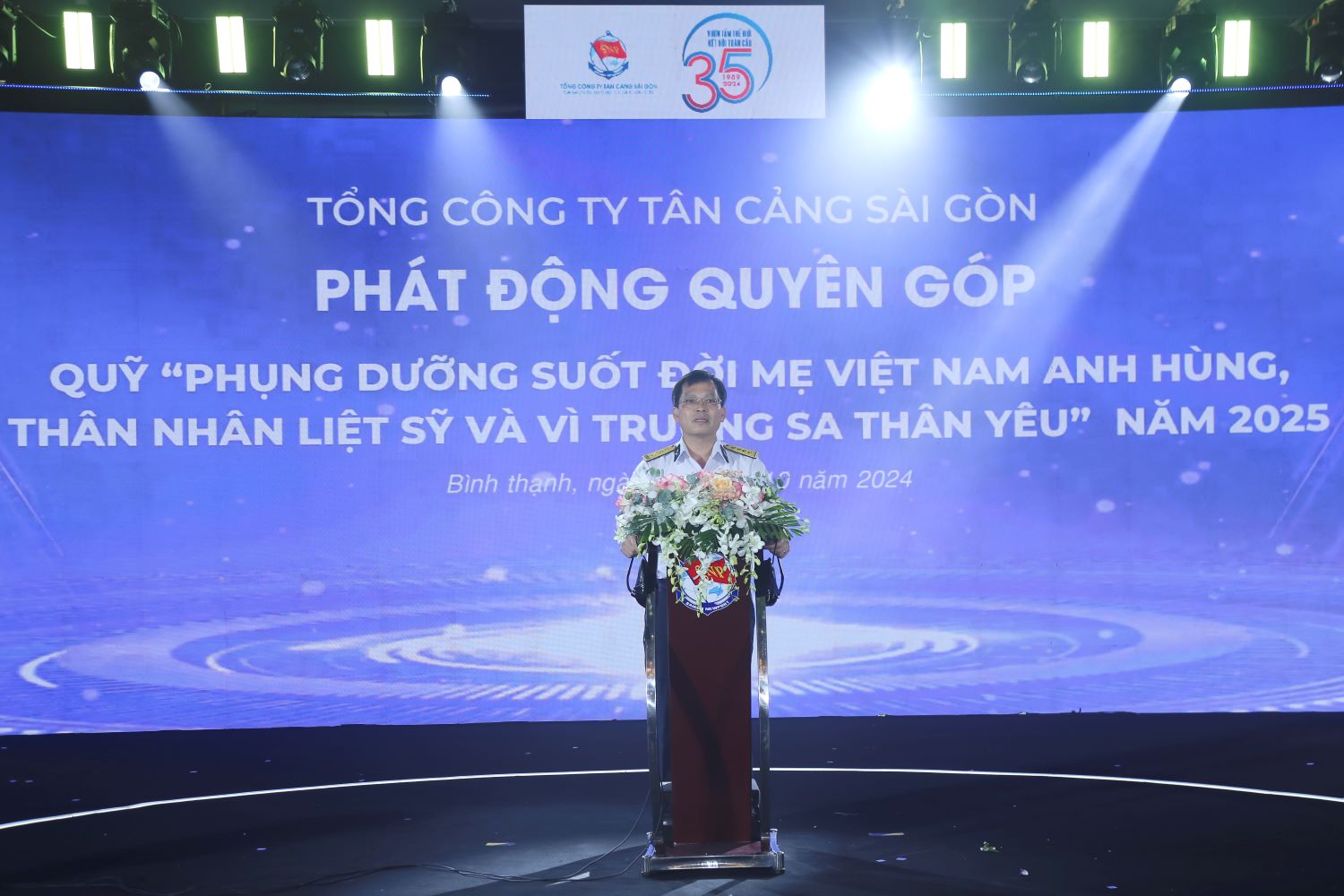 Phát biểu tại buổi lễ, Đại tá Ngô Minh Thuấn khẳng định: Cùng với sự phát triển của các doanh nghiệp cả nước, qua hơn 35 năm xây dựng, phát triển, bằng trách nhiệm chính trị của người quân nhân cách mạng, đội ngũ doanh nhân của Tân cảng Sài Gòn luôn tích cực, chủ động, sáng tạo trong hội nhập quốc tế; tiên phong trong lao động sản xuất, kinh doanh; luôn đồng hành, sát cánh với cán bộ, người lao động trong toàn hệ thống; thực hiện có hiệu quả các phong trào “Đền ơn đáp nghĩa”, “Xóa đói giảm nghèo”, tri ân các anh hùng, liệt sĩ, Mẹ Việt Nam anh hùng, những người có công với cách mạng, góp phần tô thắm thêm hình ảnh “Bộ đội Cụ Hồ - Người chiến sĩ Hải quân” trong giai đoạn hiện nay.
