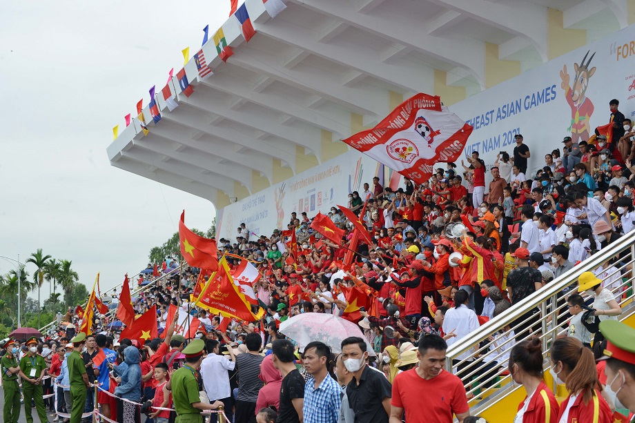 Bà Vũ Thị Oanh ở Minh Đức, Thủy Nguyên, Hải Phòng bày tỏ: Bước vào khu khán đài, chúng tôi cảm thấy lòng tự hào dân tộc trỗi dậy, tất cả mọi người dân đều cổ vũ hết mình để đội Việt Nam giành được những HCV, HCB quí giá.